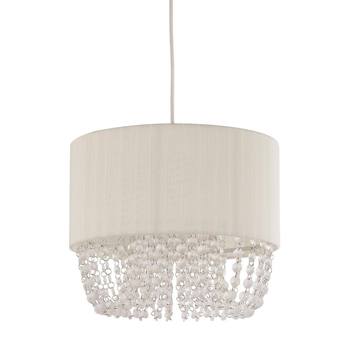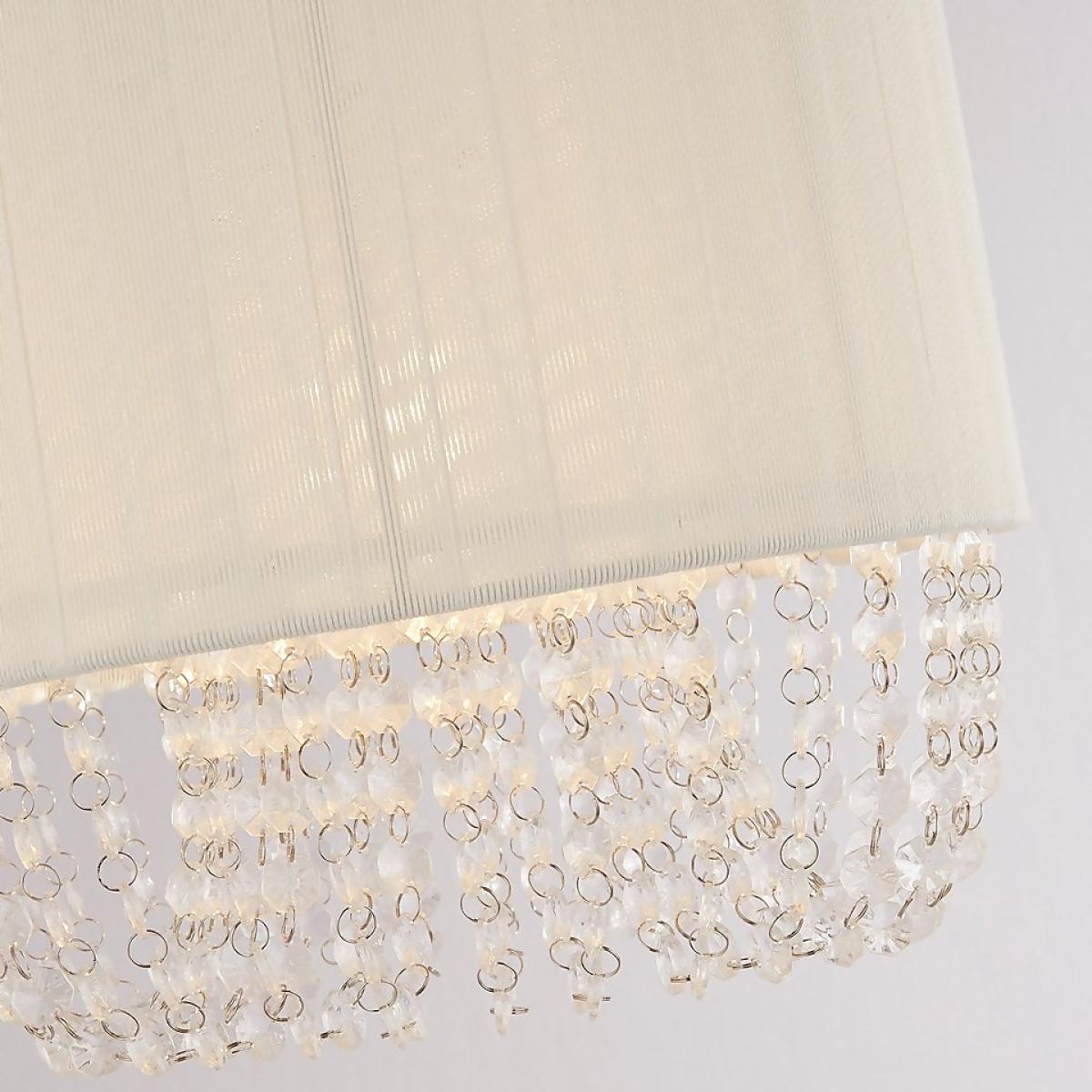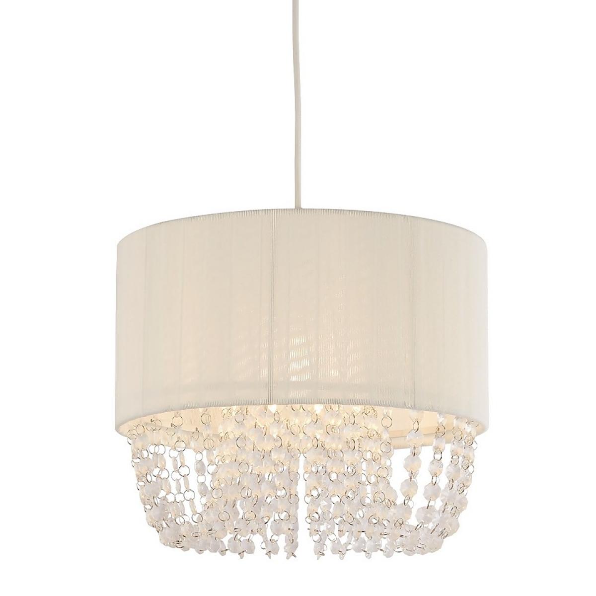 Made from a luxurious white fabric, the Bellano shade will add an elegant feel to your home. With eye-catching cascading acrylic drops, this lamp shade can be used as a ceiling, table or floor lamp. With its stunning design, this easy fit lamp shade will be the perfect addition to any living, dining or bedroom.
