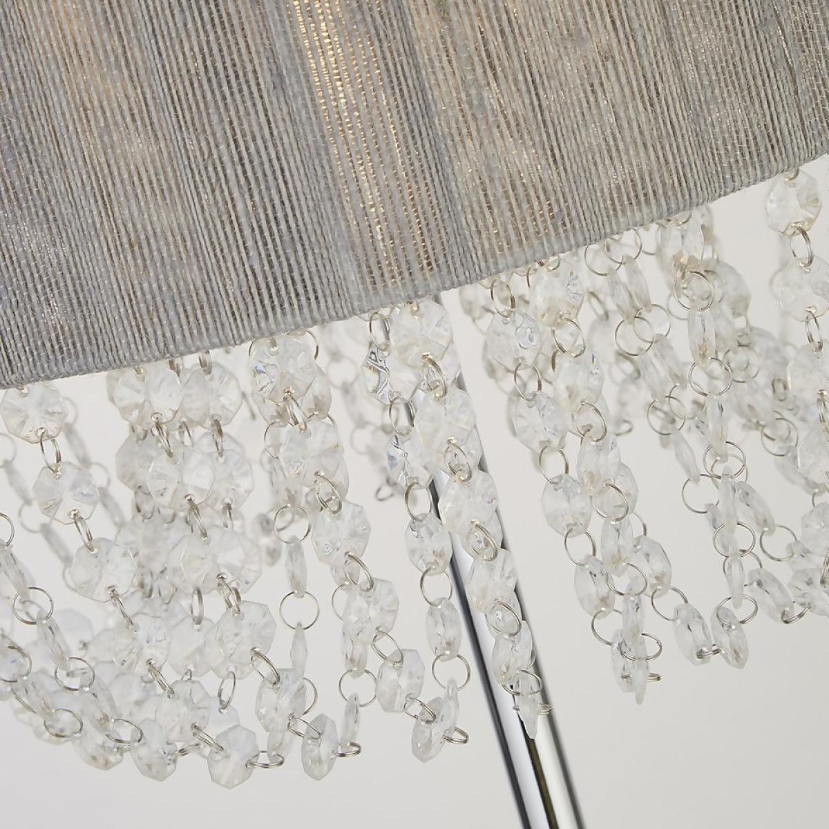 Add instant glamour to any living, dining or bedroom with this Bellano floor lamp. With a luxurious shade crafted in grey fabric, with cascading acrylic drops, this 152cm chrome floor lamp will be the perfect addition to any home.