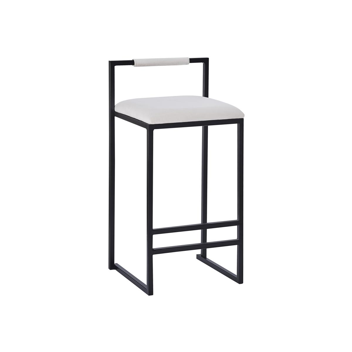 I’m drawn to this stool for its clean, geometric frame and muted seat, which give it a contemporary yet understated feel. The black metal legs contrast neatly with the beige upholstery, making it a versatile choice for Scandi-inspired kitchens, industrial lofts or minimalist dining nooks. Its slim back keeps sight lines open, so it works well in smaller spaces. For styling, line two or three up along a marble or timber breakfast bar and balance the look with simple pendant lights overhead. Keep accessories pared back - think monochrome ceramics or a single vase of foliage - to let the stool’s form speak for itself.