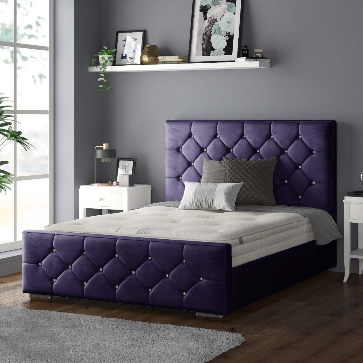 Belle Chesterfield Plush Velvet Bed Frame with Diamonds - Plum / King