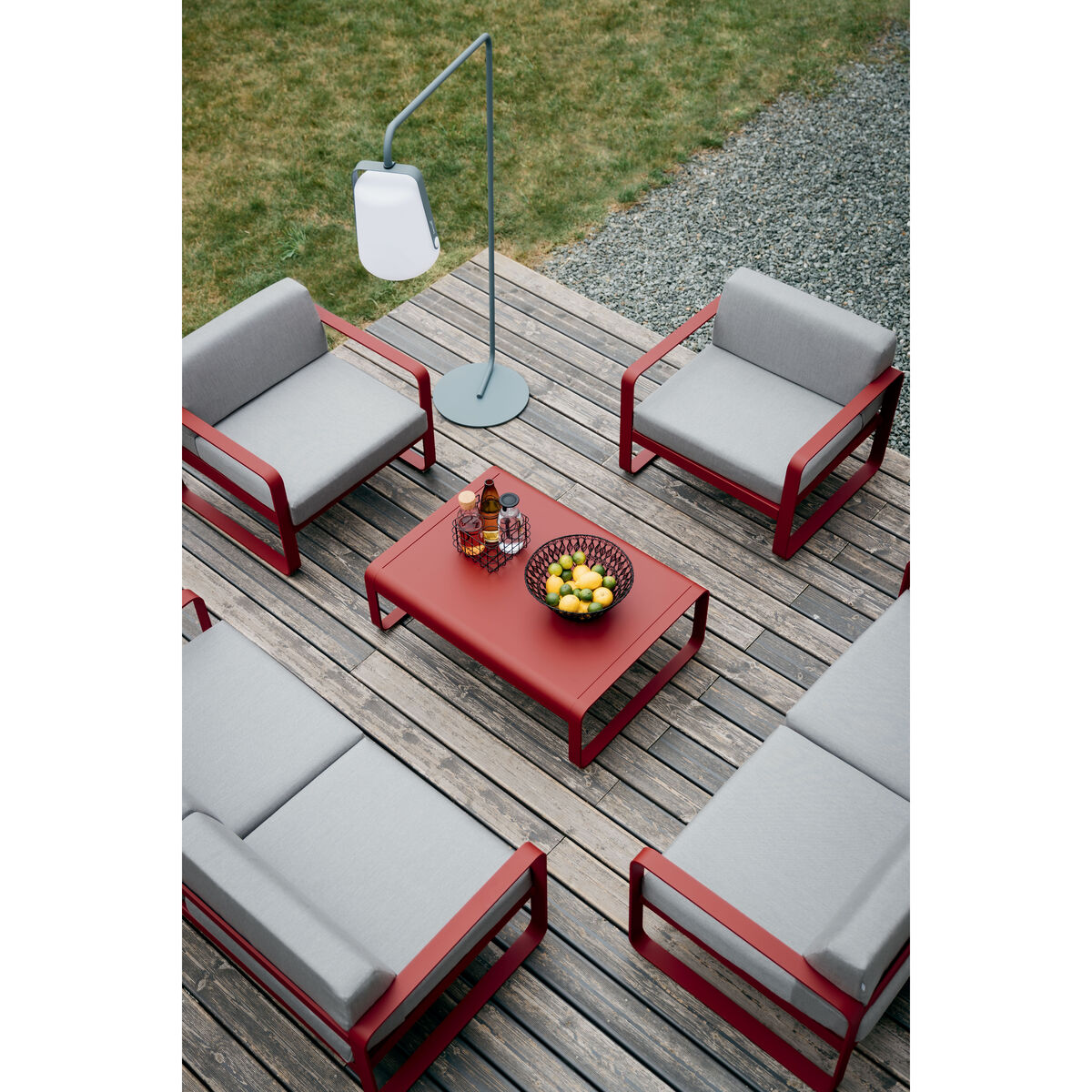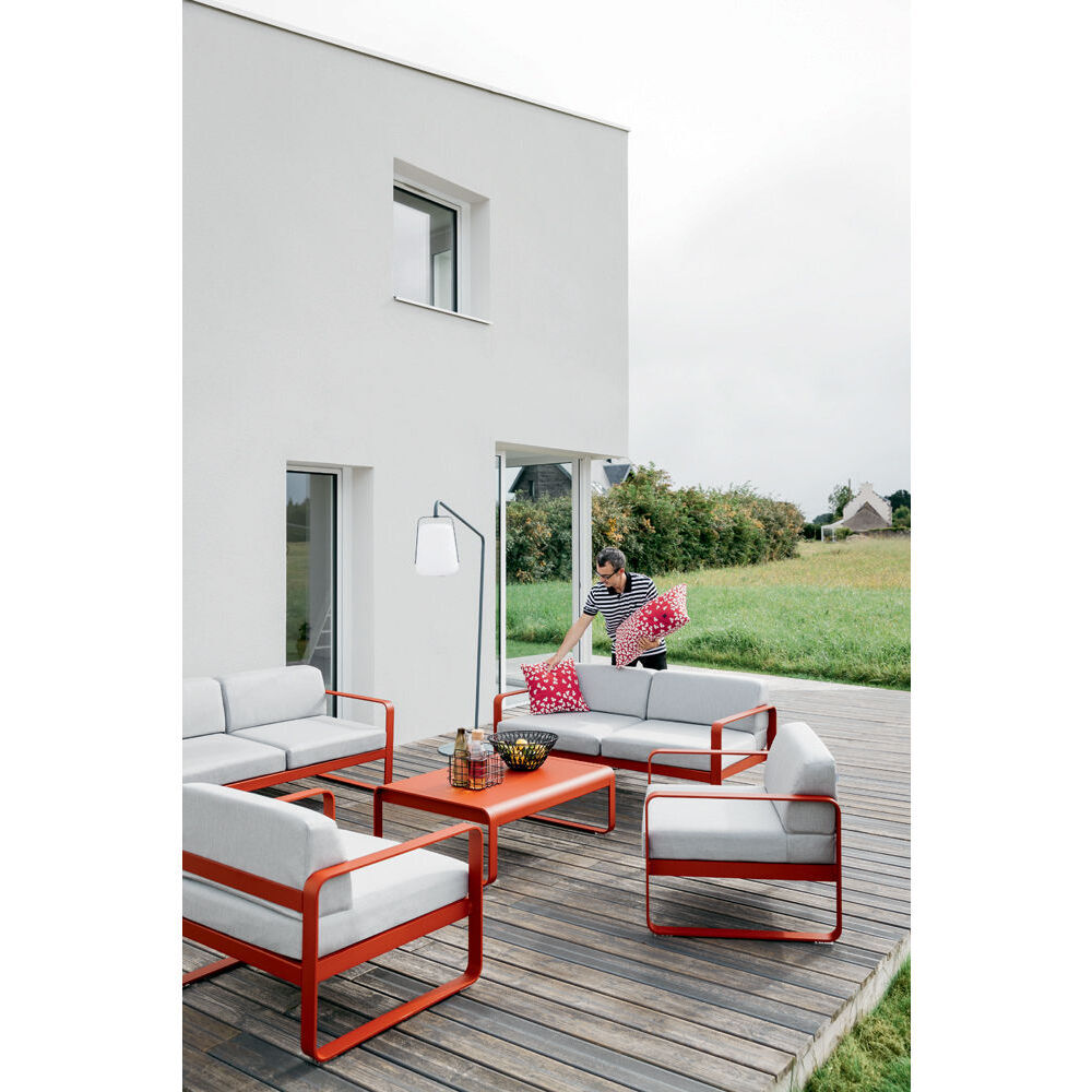 The Bellevie collection is an real invitation to sharing! Consisting of a large family table with modern lines and harmonious curves, a bench, charming chairs and a lounge suite consisting of a coffee table, an armchair and a sofa, this line made completely out of aluminium is ideal to embellish time spent together: enjoying food, family games, aperitifs among friends, etc. And to take in the fresh air, in the garden or the lounge. The Bellevie set is available in a variety of vibrant colours which create an explosive atmosphere. The latest from the Bellevie range is this pretty aluminium coffee table with its clean and efficient design. Light and easy-going, it stands out both for its practicality and its simplicity.