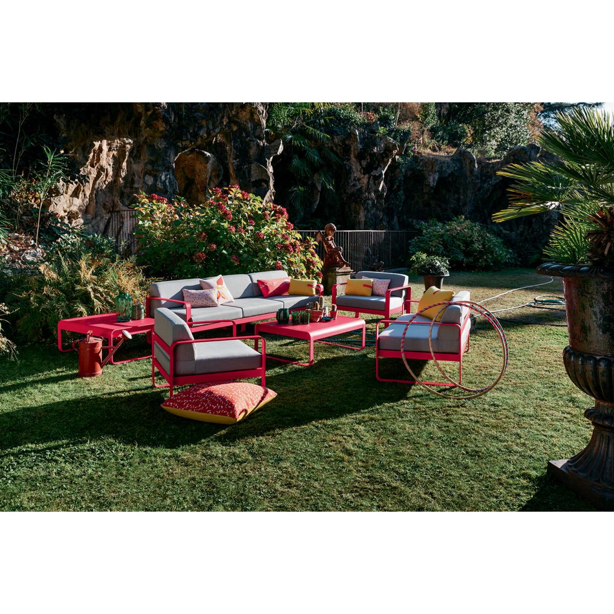 The Bellevie collection is an real invitation to sharing! Consisting of a large family table with modern lines and harmonious curves, a bench, charming chairs and a lounge suite consisting of a coffee table, an armchair and a sofa, this line made completely out of aluminium is ideal to embellish time spent together: enjoying food, family games, aperitifs among friends, etc. And to take in the fresh air, in the garden or the lounge. The Bellevie set is available in a variety of vibrant colours which create explosive ambiances. The latest from the Bellevie range is this pretty completely aluminium coffee table with its clean and efficient design. Light and easy-going, it stands out both for its practicality and its simplicity.