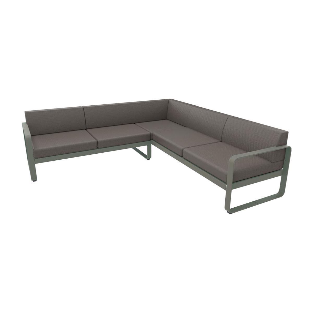 To complete its outdoor lounge collection, Fermob is launching the most comprehensive modular lounge system on the market. With its clear-cut, modern and timeless design, Bellevie Lounge symbolises easy-living at its finest. Picture yourself catching up with friends on your immense Bellevie modular sofa. Its soft, curved lines, created by the Its unique and oh-so-modern base summarises its superb style! The variety of elements available means that there are numerous possible configurations, and therefore great adaptability for your space. The technical performances of this collection remain unchanged: lightweight, easy-care cushion covers, a durable structure, weather-resistant. The enticing cushions provide excellent comfort. The elements can be attached to each other easily and quickly, thanks to an aluminium slider system (provided). Padded out with high-resistance polyurethane foams, offering unrivalled support, its cushions won't lose their shape over the years. The softness of the outdoor Sunbrella® fabric is perfect for snuggling up. 100% mass-dyed acrylic, the fabric is mould-, tear- and abrasion-resistant. The cushions are made with a quick-dry fabric. The cushion covers can be machine-washed, if needed. However, with it's stain-resistant coating, it's not likely that you'll need to resort to that! You can rely on your gorgeous Club Bellevie sofa to withstand the test of time. We're sure you've got the idea - its ultra-resistant cushions and the polyester powder paint coating on its aluminium structure can take on all weather conditions, even in seaside climates. This composition, No. 2 A, comprises: 1 x 2-seater left-hand corner module (1 left-hand armrest) + 1 x 3-seater sofa (with 2 armrests). Connecting sliders provided to attach the modules to each other.