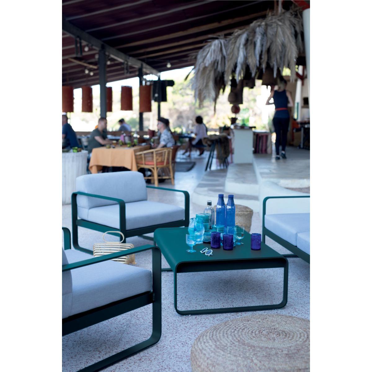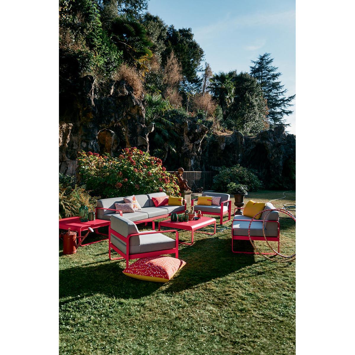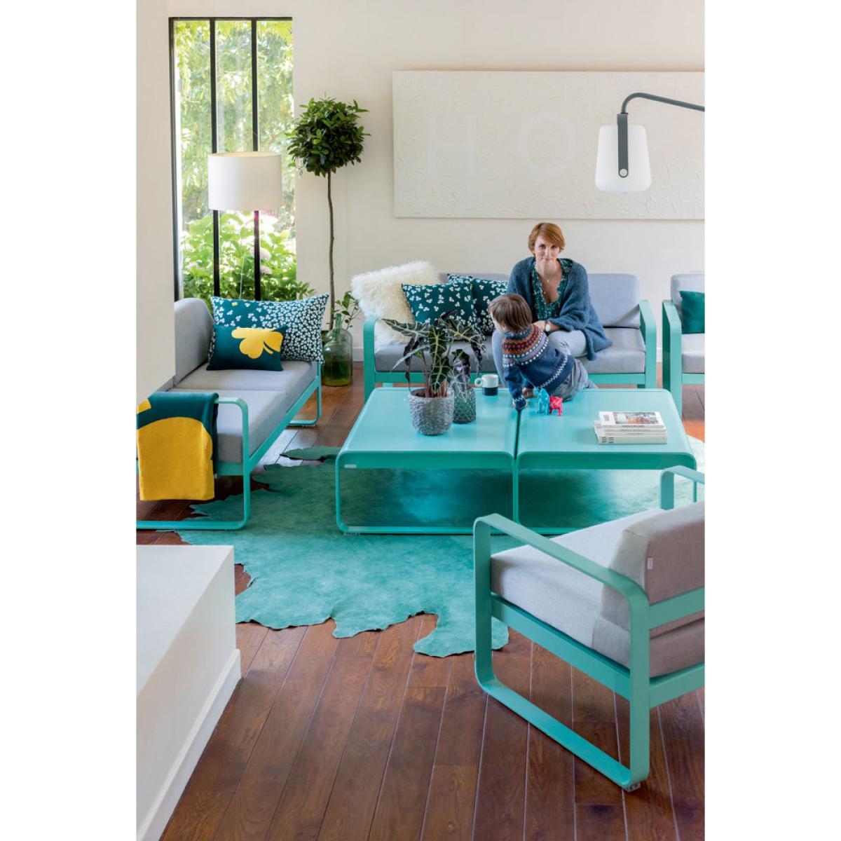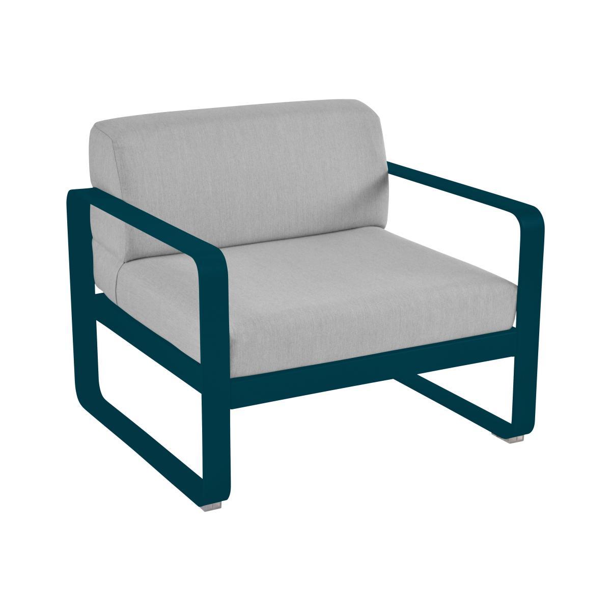 The Bellevie armchair harmoniously combines softness and rigidity. It is made up of generous soft cushions on a fine aerial lacquered aluminium structure. An invitation to comfort and togetherness! This armchair sums up the quest for the essential, comfort, lightness and quality associated with the image of a modern, comfortable armchair. Its style will make an impact both indoors and out. The cushions are covered in acrylic fabric, resistant to extreme weather conditions. Water-repellent, it has an anti-stain and anti-mould treatment. The breathable fabric allows air to pass through, which avoid condensation. Flexible, comfortable and pleasant to touch, it offers optimal comfort. The aluminium structure is coated in a UV and bad weather resistant lacquer. Removable, the cover is machine-washable at 40°.