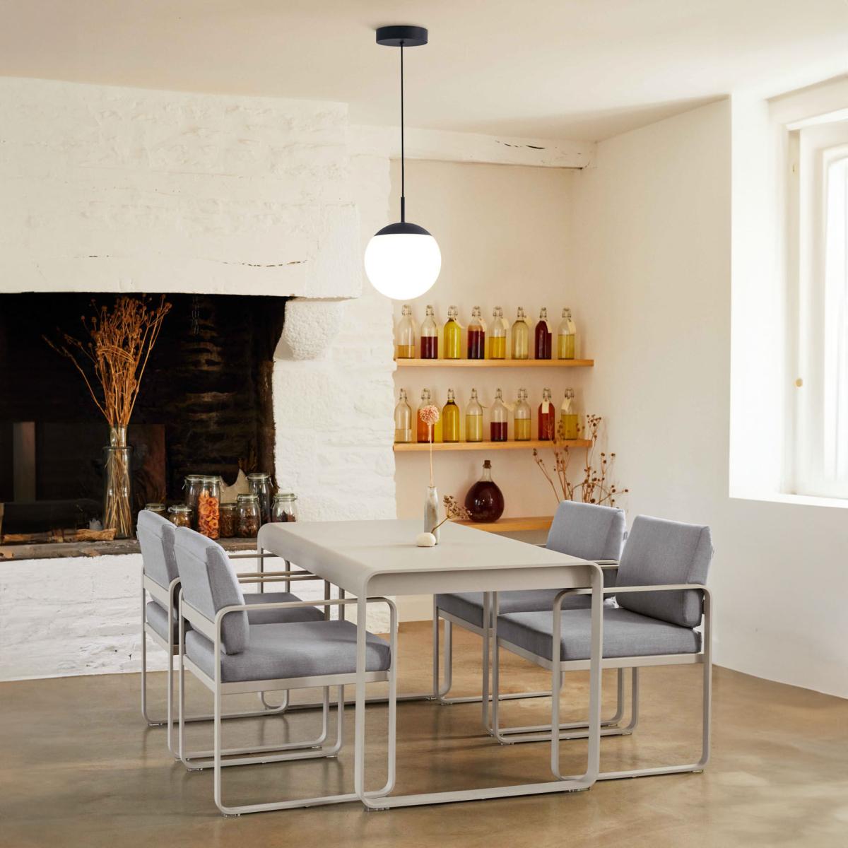 The Bellevie collection’s soft curves are essential for those simple pleasures in life. It evokes those meals shared around the table which stretch on and on. Those moments when you wish time would stop with you all together! This is what the design studio Pagnon et Pelhaître had in mind when they designed the Bellevie dinner table with its characteristic base that leaves a beautiful impression. Imagine the four of you at dinner around this stylish metal table - a family lunch, snacks with your children or dinner among friends... Don’t want to choose between al fresco dining or your own dining room? You’re not alone! Your 140x80 Bellevie dining table is just as at home outdoors as in! Its steel table top and aluminium base are covered in polyester powder coated paint and are extremely hard-wearing thanks to Fermob's expertise in metal treatment - it will last the test of time and the elements! Your guests will fall in love with Bellevie... And Bellevie will be witness to secret whispers and roaring laughter alike! Lightweight, it can move from your balcony, patio or garden to your kitchen or dining room to give a designer touch to your interiors! Pair it with four chairs from the same collection for a dining set you’ll love. Its timeless quality also allows your decorative ideas to run wild: You can combine it with chairs from the Luxembourg, Cadiz or Sixties collections... Isn't life beautiful around your Bellevie dining table? Its standard height makes it a furniture classic and it’s available in 24 colours. And you can mix it up, too, with Fermob’s high or lounge version! Why not grow the family with a Bellevie sofa and coffee table in the lounge or a bench with backrest in the garden?