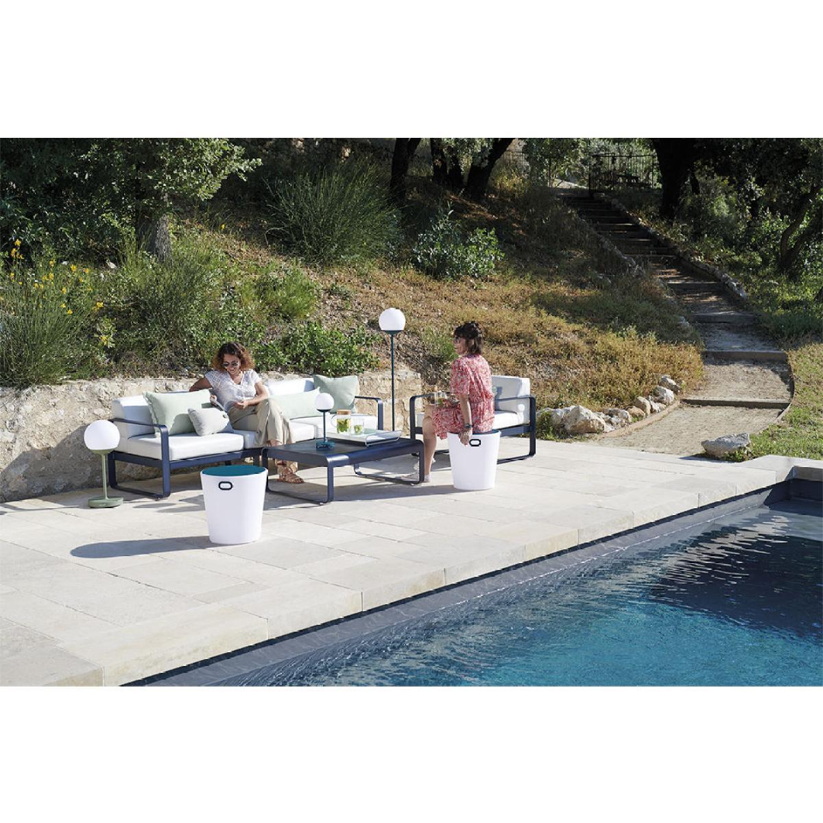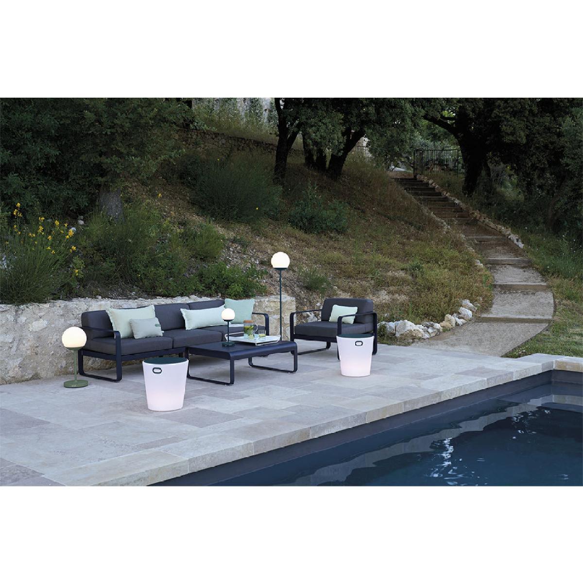 The Bellevie sofa harmoniously combines softness and rigidity. Offered in a new three-seater version, it consists of generous, soft cushions set in a fine, airy aluminium structure. An invitation to comfort and togetherness! This sofa sums up the quest for the essential, comfort, lightness and quality associated with the image of a modern, comfortable sofa. Its style will make an impact both indoors and out. The cushions are covered in Sunbrella® fabric, resistant to extreme weather conditions. Water-repellent, it has an anti-stain and anti-mould treatment. The breathable fabric allows air to pass through, which avoids condensation. Flexible, comfortable and pleasant to touch, it offers optimal comfort. The aluminium structure is coated in a UV- and weather-resistant lacquer. Removable, the cover is machine-washable at 40°.