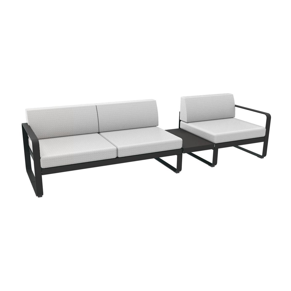 To complete its outdoor lounge collection, Fermob is launching the most comprehensive modular lounge system on the market. With its clear-cut, modern and timeless design, Bellevie Lounge symbolises easy-living at its finest. Picture yourself catching up with friends on your immense Bellevie modular sofa. Its soft, curved lines, created by the Its unique and oh-so-modern base summarises its superb style! The variety of elements available means that there are numerous possible configurations, and therefore great adaptability for your space. The technical performances of this collection remain unchanged: lightweight, easy-care cushion covers, a durable structure, weather-resistant. The enticing cushions provide excellent comfort. The elements can be attached to each other easily and quickly, thanks to an aluminium slider system (provided). Just imagine all the places you could install the Bellevie sofa: with a surprisingly light weight, you can move it around to suit your fancies. Padded out with high-resistance polyurethane foams, offering unrivalled support, its cushions won't lose their shape over the years. The softness of the outdoor Sunbrella® fabric is perfect for snuggling up. 100% mass-dyed acrylic, the fabric is mould-, tear- and abrasion-resistant. The cushions are made with a quick-dry fabric. The cushion covers can be machine-washed, if needed. However, with it's stain-resistant coating, it's not likely that you'll need to resort to that! You can rely on your gorgeous Club Bellevie sofa to withstand the test of time. We're sure you've got the idea - its ultra-resistant cushions and the polyester powder paint coating on its aluminium structure can take on all weather conditions, even in seaside climates. This composition, No. 1 B, comprises: 1 x 2-seater left-hand module + 1 connector shelf + 1 x 1-seater right-hand module (connection sliders provided to attach the modules to each other).