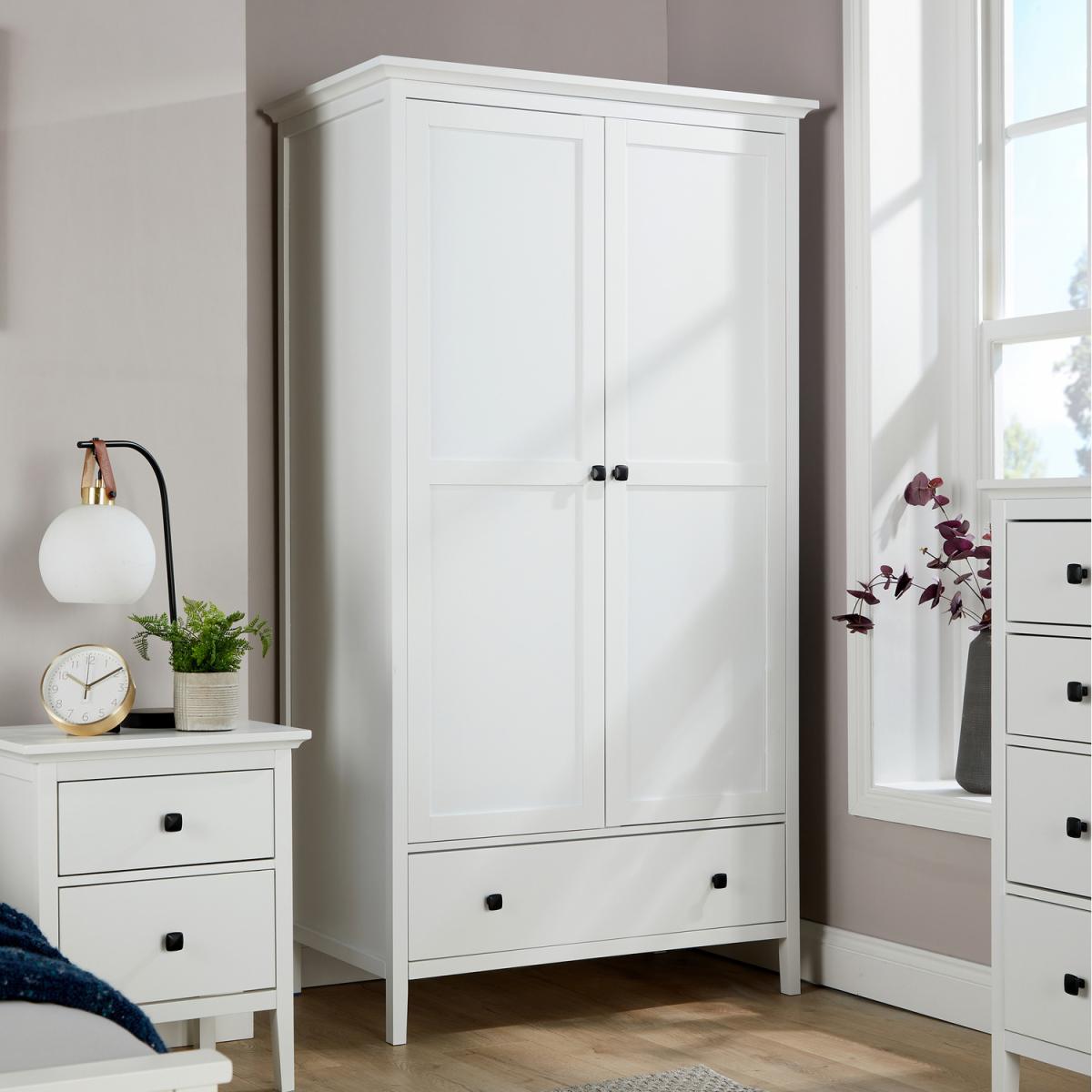 Bellevue 2 Door Wardrobe with Storage Drawer - White