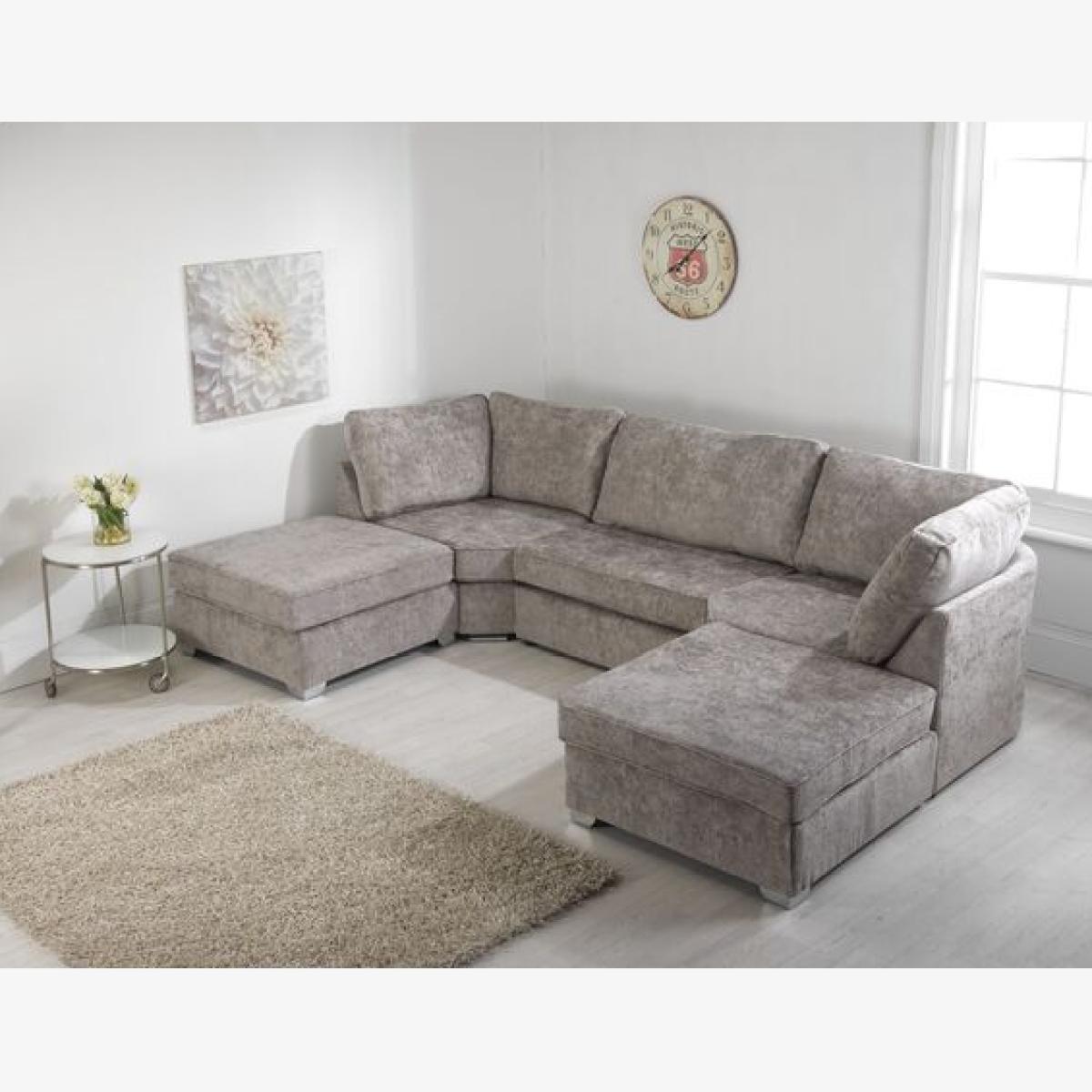 Belling Chenille Silver Sofa Full Back U Shape - Silver