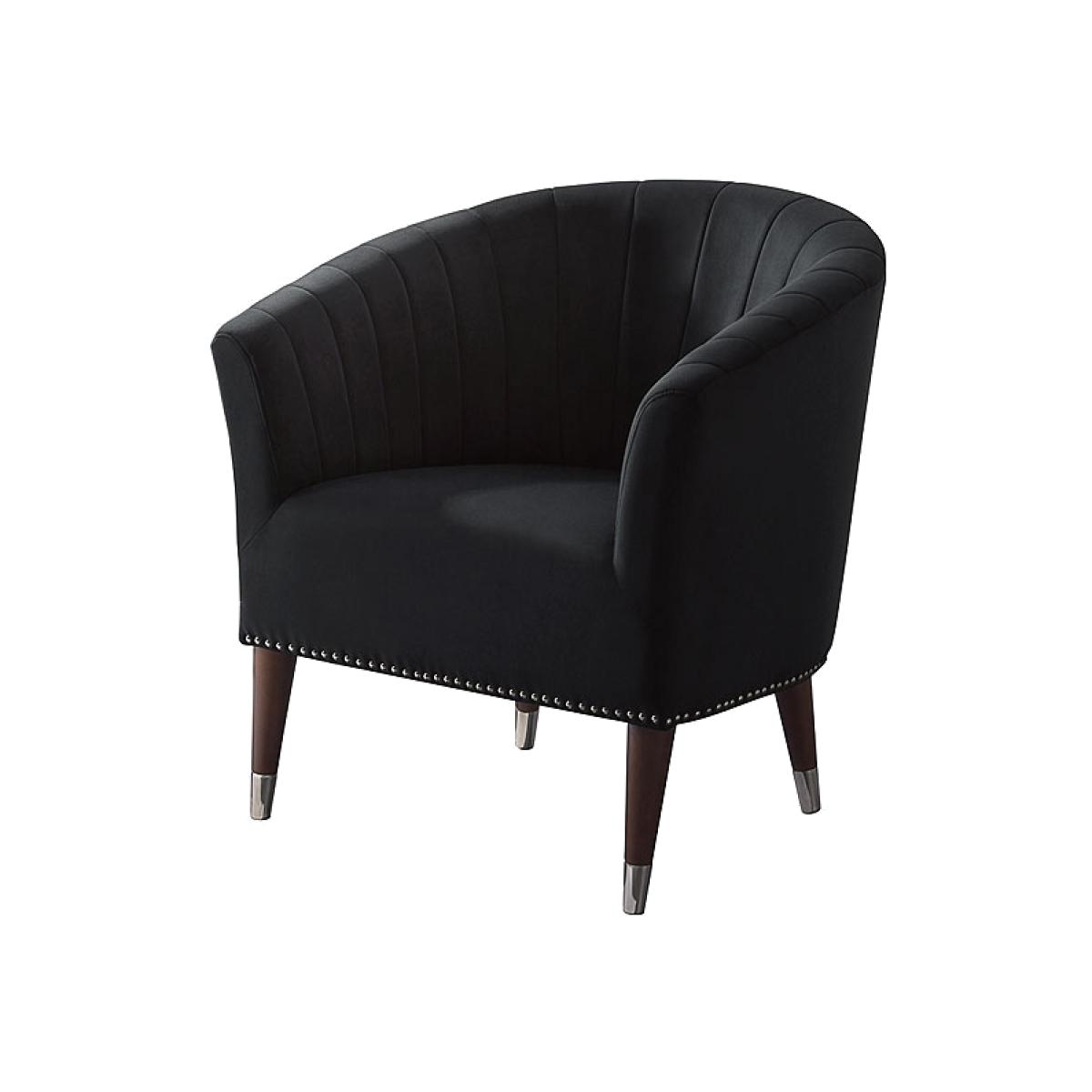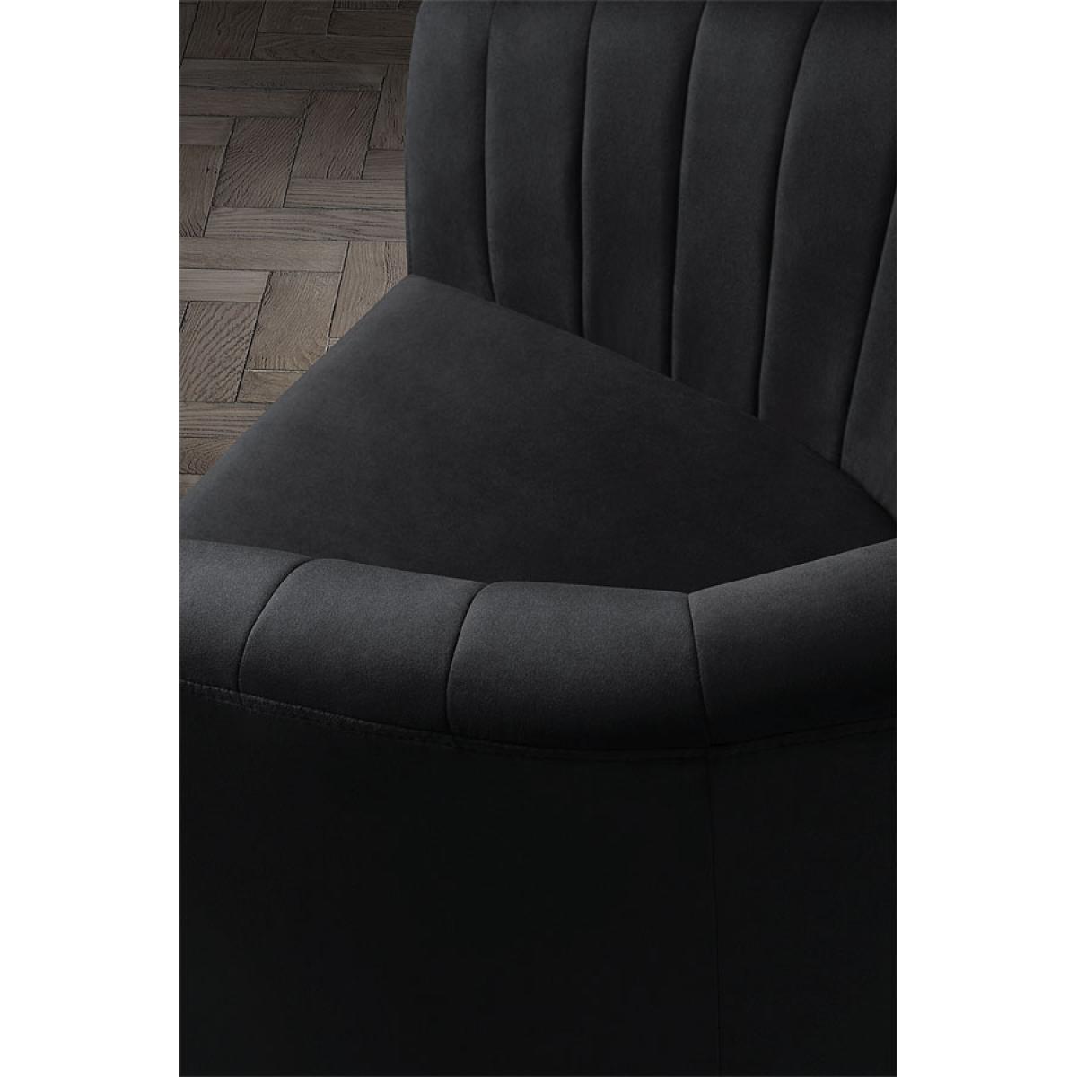 I love this black velvet armchair for its timeless elegance and versatile appeal. It works particularly well in modern, glam, or vintage-inspired interiors, adding a touch of sophistication without overpowering the space. Its rounded silhouette and plush velvet finish make it inviting and comfortable, perfect as an accent piece in a living room, bedroom corner, or even a chic home office. For styling tips, pair it with a statement throw or geometric cushions to bring colour and texture, or position it alongside metallic or matte black accessories for a cohesive, contemporary look. Its sleek design also makes it easy to incorporate into both bold and understated schemes, offering flexibility whether you're aiming for luxe minimalism or maximalist charm.