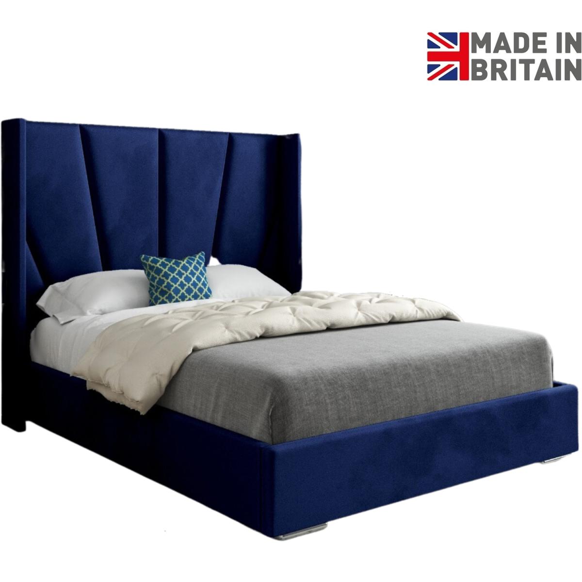Bellini Wide Curved Winged Upholstered Soft Velvet Bed Frame - Blue / King