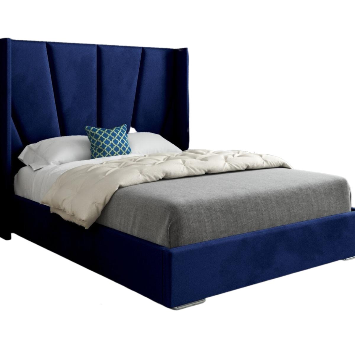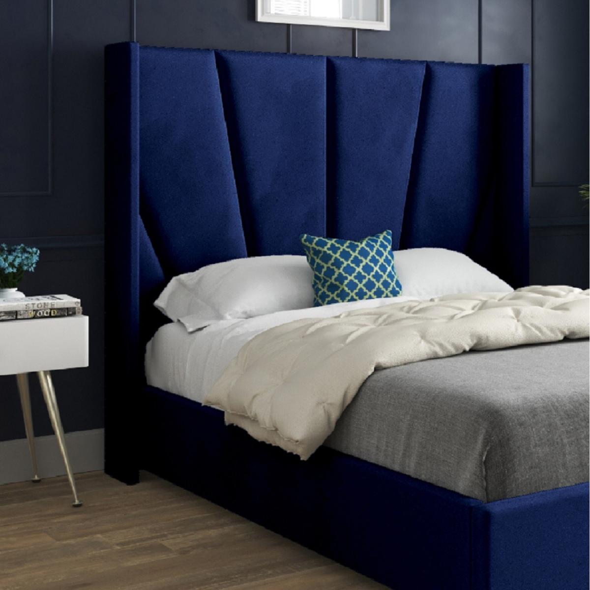 Bellini Wide Curved Winged Upholstered Soft Velvet Bed Frame - Blue / Superking