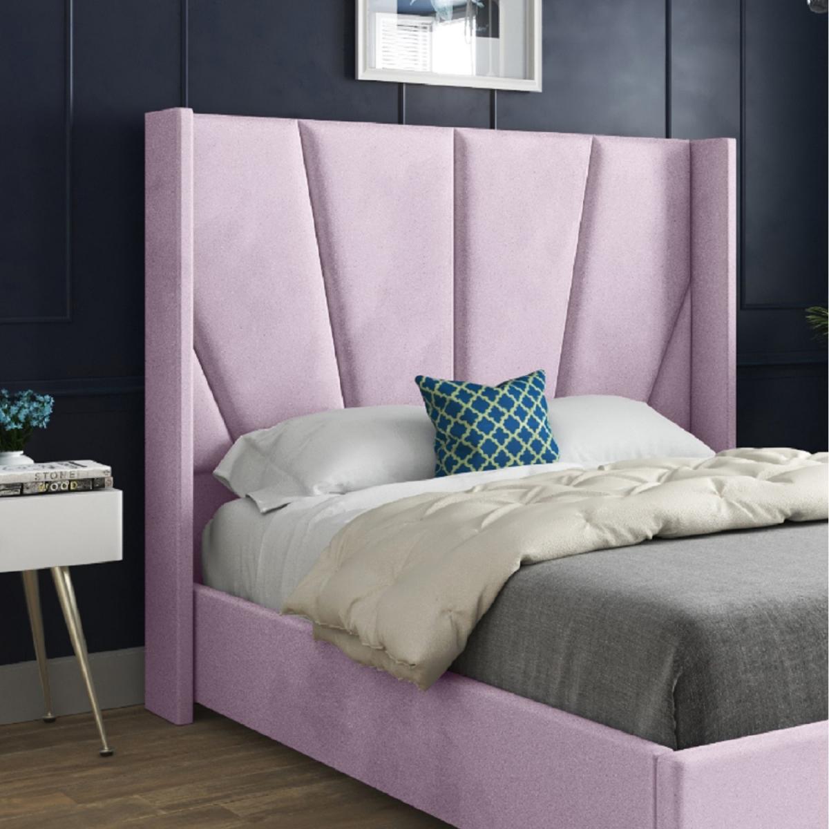 Bellini Wide Curved Winged Upholstered Soft Velvet Bed Frame - Pink / Single