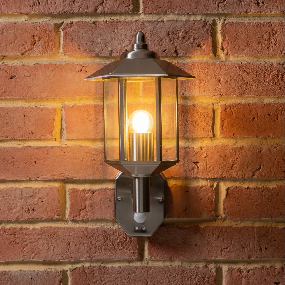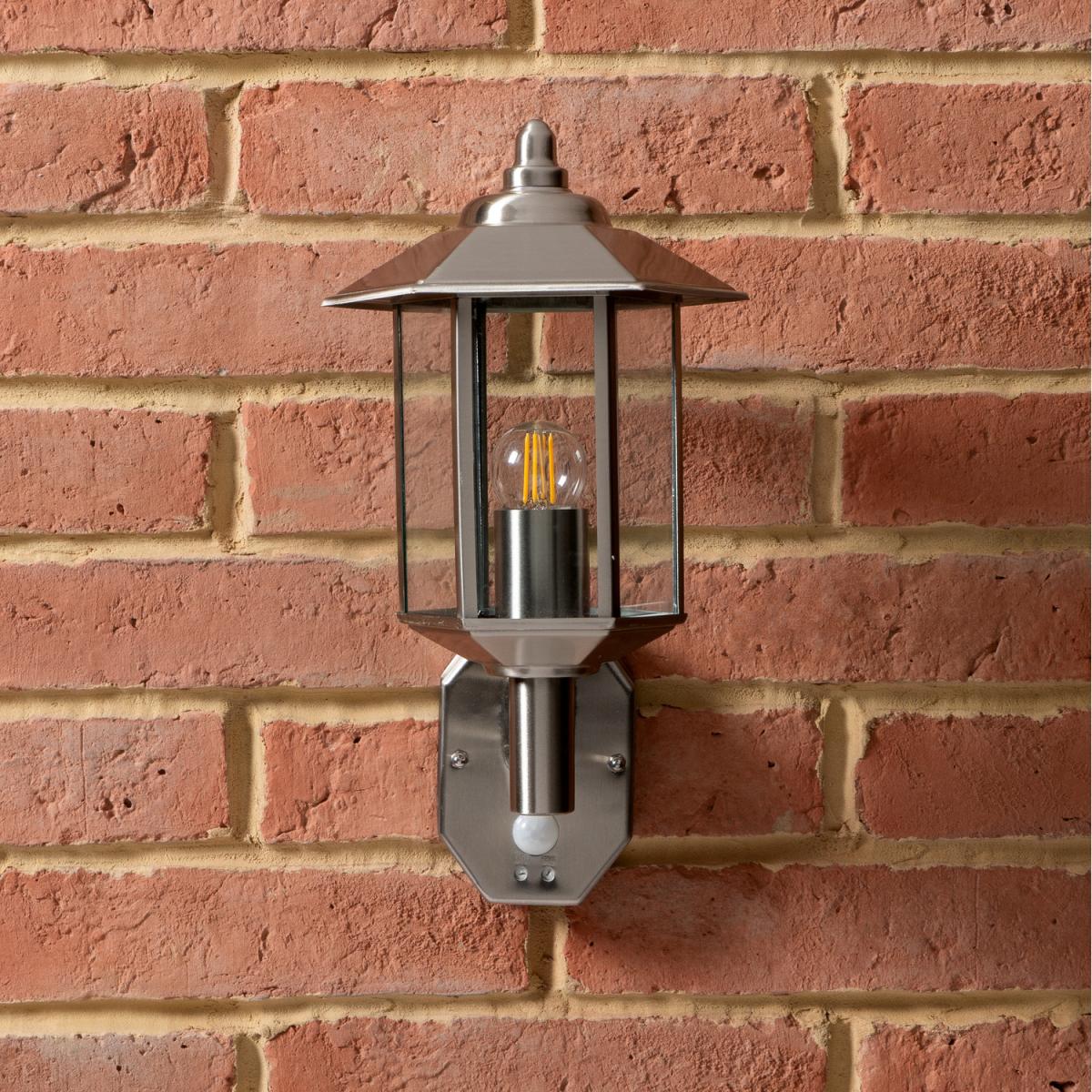 This stainless steel wall lantern will give your outdoor space a classic look with a contemporary touch. The lantern gives off plenty of light through the glass panes making it the perfect addition to your garden space.
