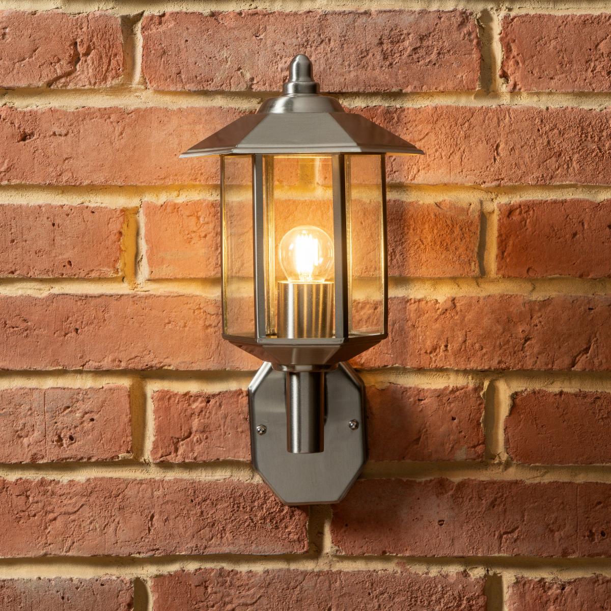 Enhance the ambience of your outdoor space with this stunning blend of modern style and timeless charm. With a classic design, this wall light is made from sturdy steel metal in a shiny satin silver finish you can be sure to match your outdoor décor. With an IP44 rating, this wall light is designed to brave the elements with ease and weatherproof qualities ensure that it remains resistant to dust and water splashes. Whether it's illuminating a garden pathway or accentuating your patio, this light will continue to radiate its warmth and charm, unaffected by the unpredictable forces of nature.