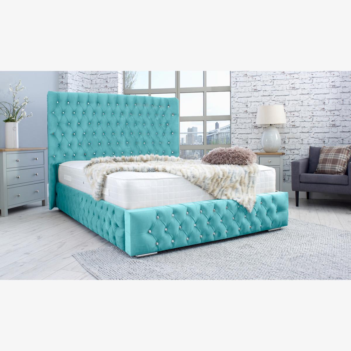When you need to add a layer of style and elegance to your sleeping area, the Bello bed, with its plush velvet fabric and the highly padded frame, is the top choice for you. Its oversized Bello-styled padded cushion headboard with classic diamante button detailing all adds a touch of sophistication to your bedroom. The Spanish upholstery winged headboard makes for a relaxing spot in the morning or evening. With its plush velvety fabric and comfy padding, you can always look forward to getting to your bedroom every day. The sturdy feel of the Bello bed is supported by a solid board base and chrome feet. You can choose from the different color options. The mattress and accessories are not included in the package.