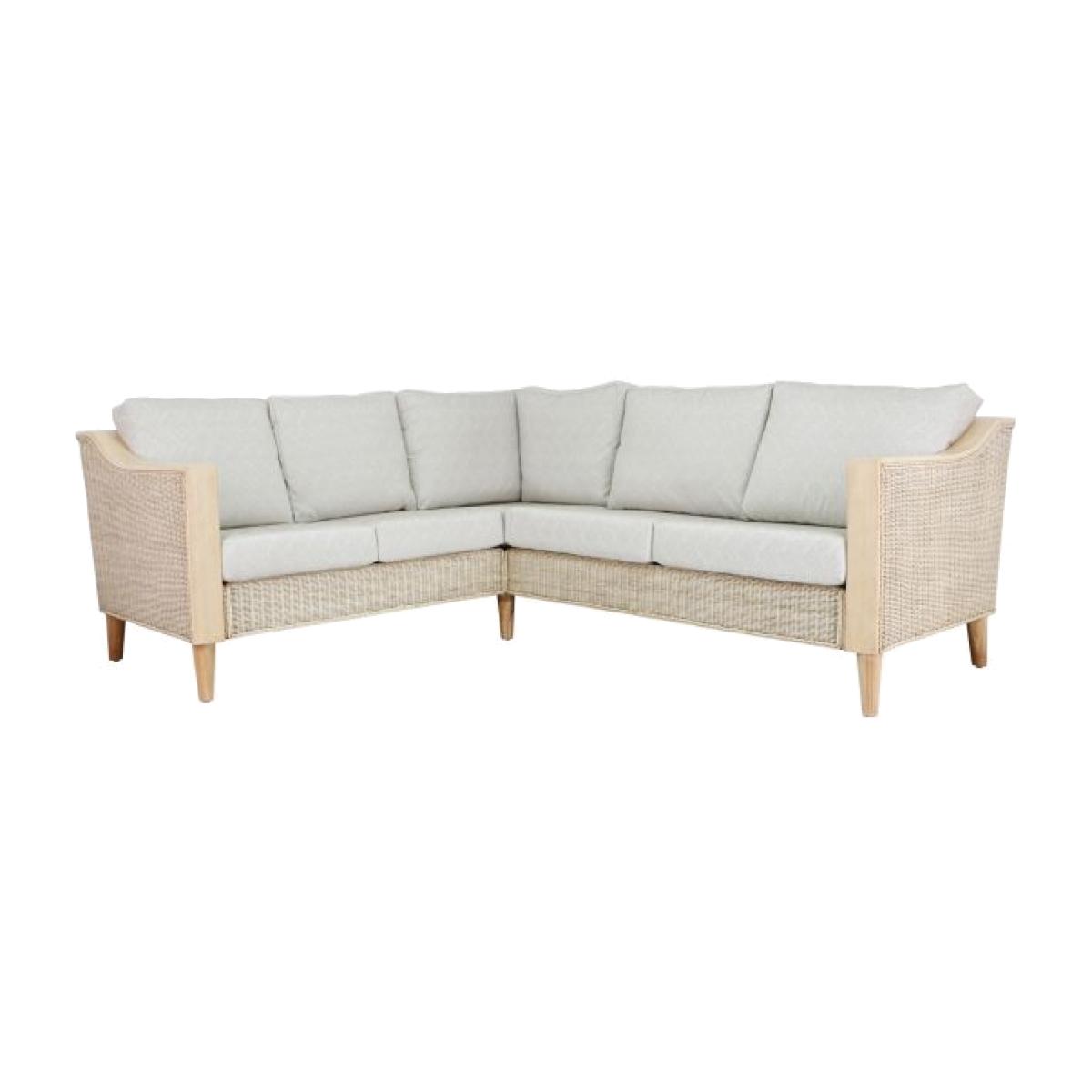 Mid-century modern has made a comeback, beautifully demonstrated by the Daro Elgin Corner Set 5 Left Light Natural Wash. Warm light natural wash rattan panels coordinate with the planed cane arms and neat wooden feet making it a great addition to any home.  The versatility of the range has been enhanced by the addition of a Chaise sofa in two sizes, with the option to have it as a left-hand or right-hand seat. This works wonderfully alongside the standard chair and sofa options. Corner Set 5 available Left or Right Exclusive hand crafted design Cushions made in the UK Also available in Frame only (cushions not included) Dimensions: 92cm (H) x 214cm (D) x 240cm (W) 2 Year Manufacturer's Guarantee