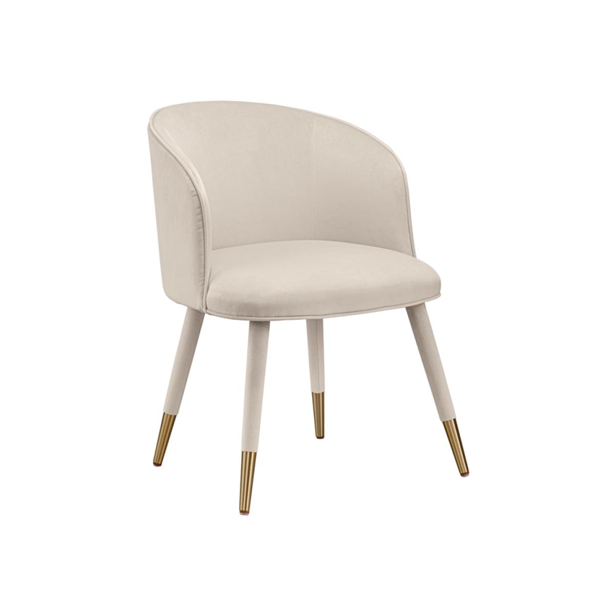 I’m a fan of this Bellucci chair for its clean lines and subtle curve back - the chalk upholstery keeps things light, while the brass-tipped legs add just the right hint of sparkle. It suits modern Scandi schemes and pared-back contemporary dining spaces, but can work equally well in a more eclectic setting when mixed with bolder hues or patterned rugs. For practical styling, pair it with a mid-tone oak or walnut table to warm up the pale finish, and introduce textured linens or a velvet scatter cushion to soften the look. Positioning it against a muted charcoal or deep green wall will really make the brass details pop, and adding a simple glass vase of fresh foliage completes a balanced, lived-in feel.