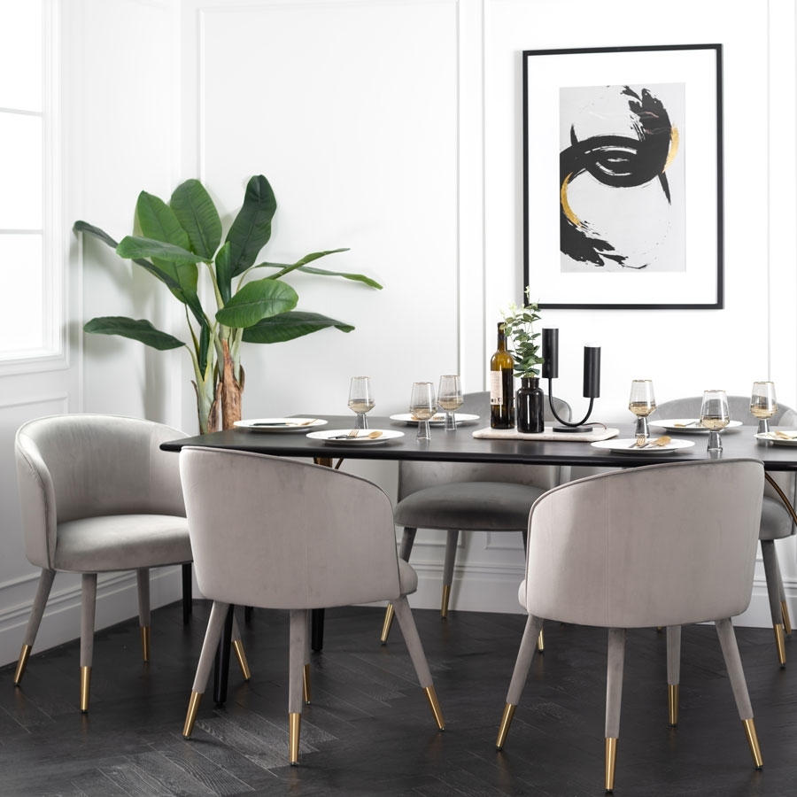 I love this chair for its sleek, contemporary look with a touch of elegance thanks to the brass caps on the legs. It works beautifully in modern and transitional dining rooms, especially when paired with marble or glass tabletops for a luxe feel. Its dove grey upholstery provides versatility, making it easy to mix and match with various colour schemes, from soft pastels to bolder tones. For practical styling, consider layering with textured tableware or adding a cosy throw or cushion to enhance comfort and visual interest. This chair's understated sophistication makes it a reliable choice for creating a polished, inviting dining space.