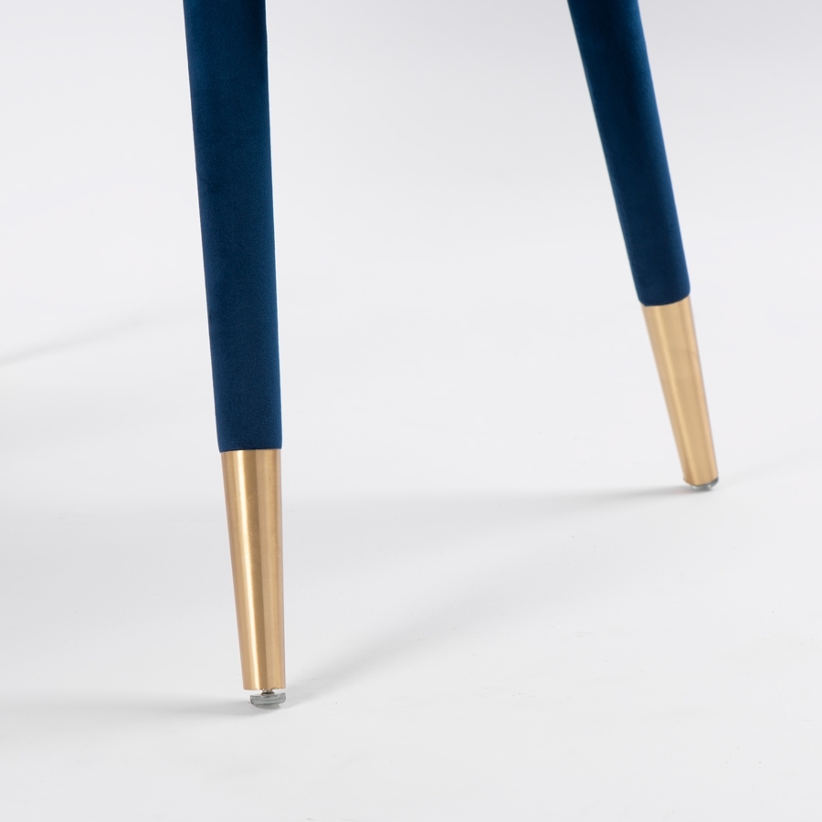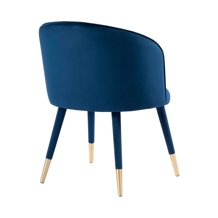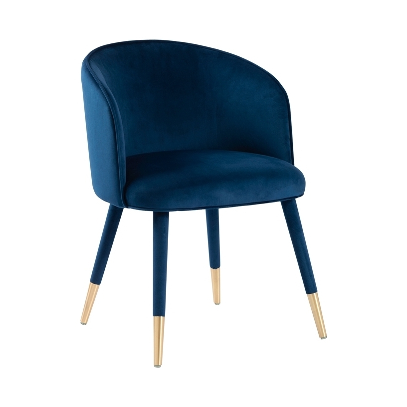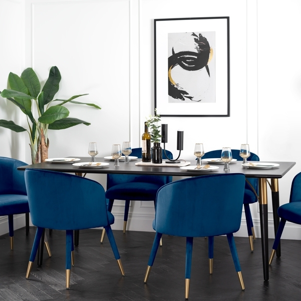 I love this chair for its rich navy blue colour and chic, contemporary silhouette. It works particularly well in modern or minimalist interiors, adding a pop of colour without overwhelming the space. Its velvet fabric gives it a luxurious feel, making it suitable for both casual and more formal dining settings. For styling tips, pair it with a sleek glass or wood table to let the colour stand out or mix with neutral tones and metallic accents for a sophisticated look. Practical advice would be to keep the surrounding decor simple, as the chair itself is a statement piece, and ensure the height and comfort level suit the space for everyday use.