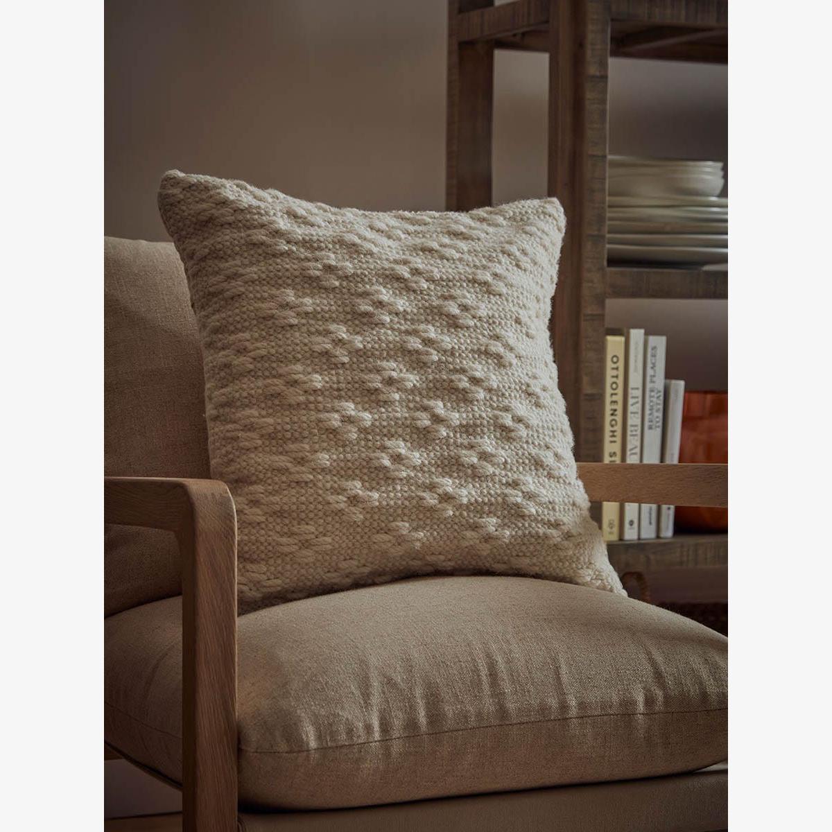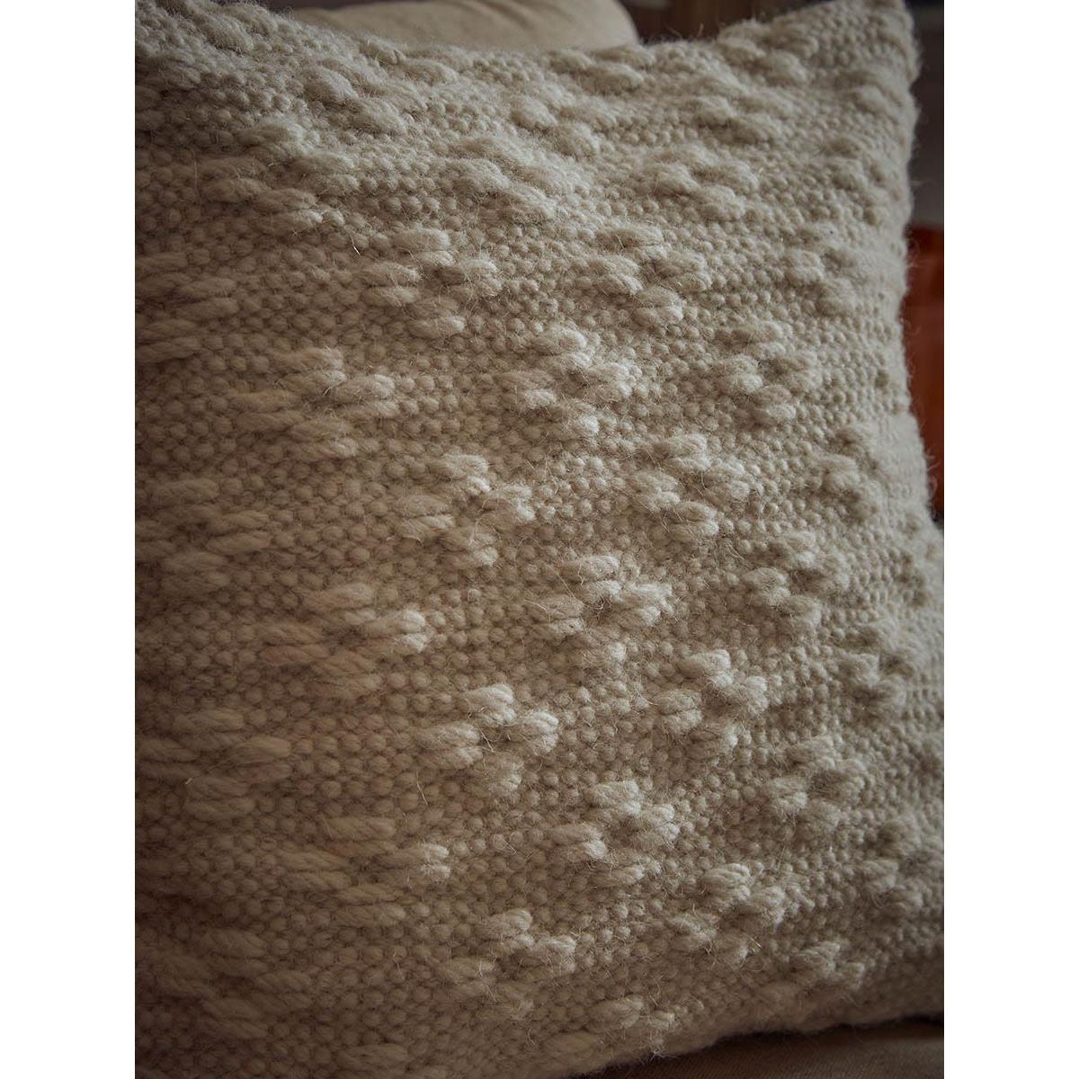 Invite a warm and cosy atmosphere in your home with our Belmond cushion cover. Made from wool, it has a larger woven geometric pattern on it, adding textural detailing to a cushion cover that is otherwise neutral. Its simple design makes it perfect for a variety of interiors, and works placed on a bed or on an armchair for a snug reading corner in your home.  This cushion cover is suitable for a 45 x 45cm cushion pad which is available separately.