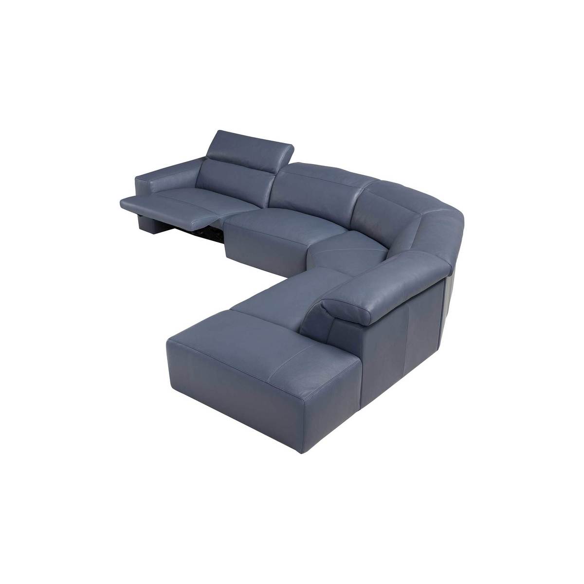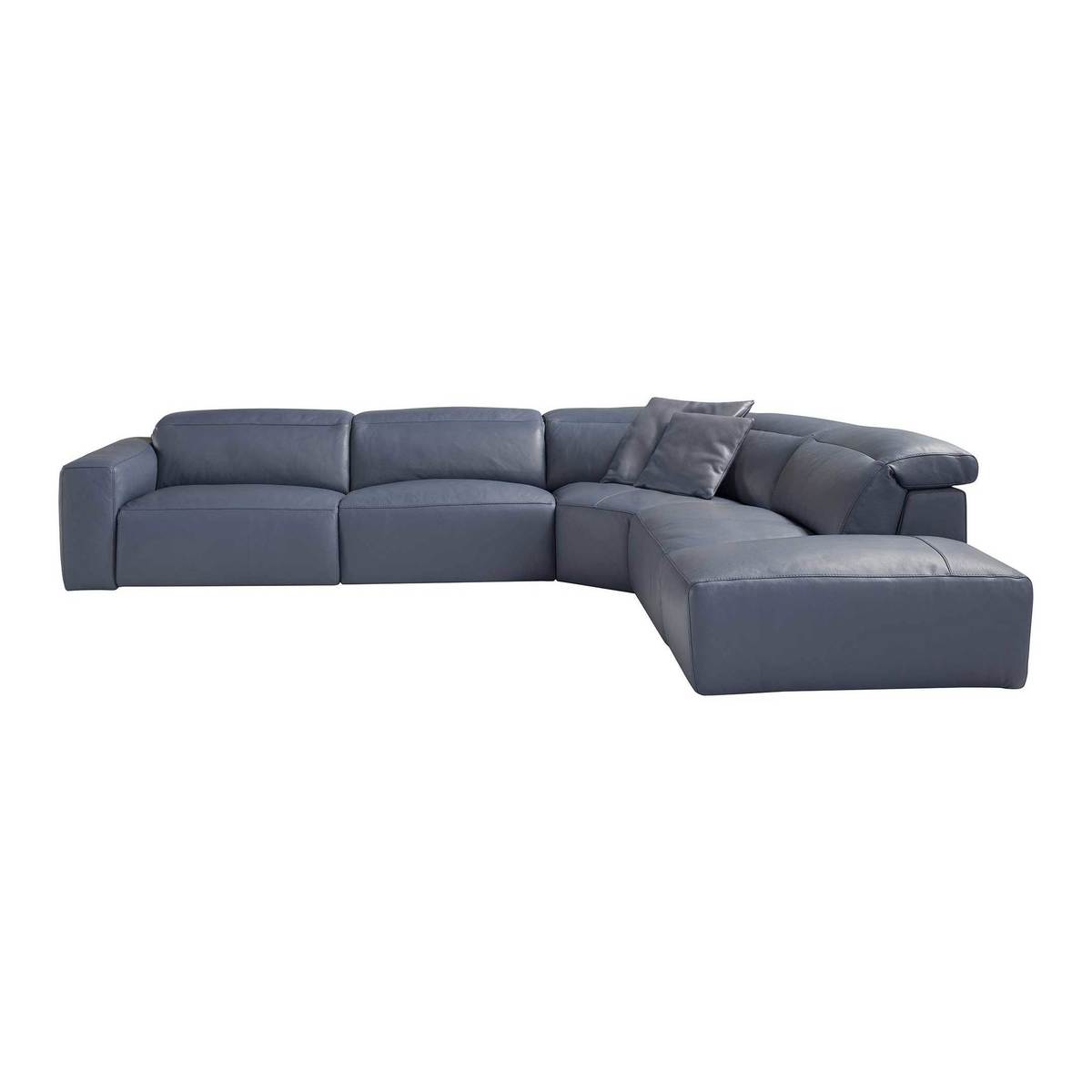 Sleek, modern reclining corner sofa, offering superb comfort upholstered in statement navy leather, bang on trend and the ultimate in style for any modern living room The Belmondo is a quality designed range that will undoubtedly add that touch of luxury to your home. Equipped with plenty of seating that’s perfect for days spent in front of the telly or evenings entertaining guests, the stylish Belmondo boasts foam with goose feather interiors along with electronic recline and practical peninsula end.