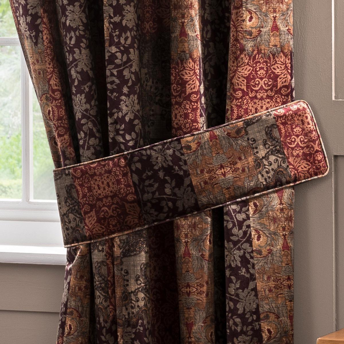 Crafted with a luxurious velvet finish and decorated with rich and vibrant autumnal tones, these Belmont tiebacks feature a patchwork style pattern and are complete with piped edges for added sophistication. Pair with the matching Belmont curtains.