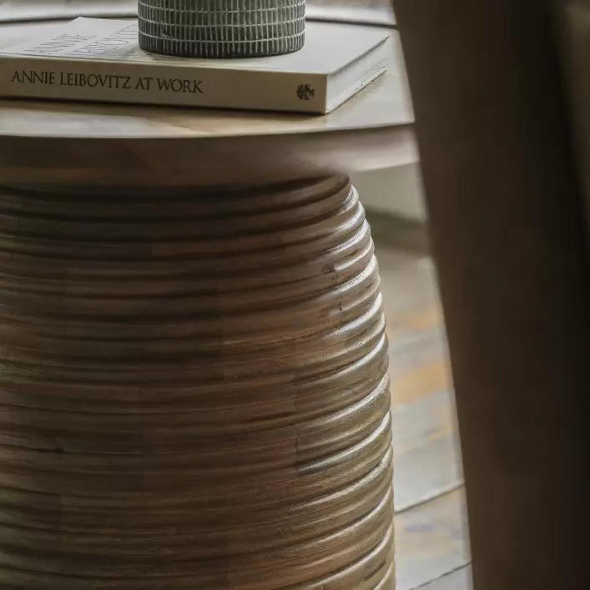 This beautiful side table is crafted from solid mango wood, creatively laminated & sculpted, to give a distinctive ‘Beehive’ design base with a wide overhanging tray top. Matching coffee table available.