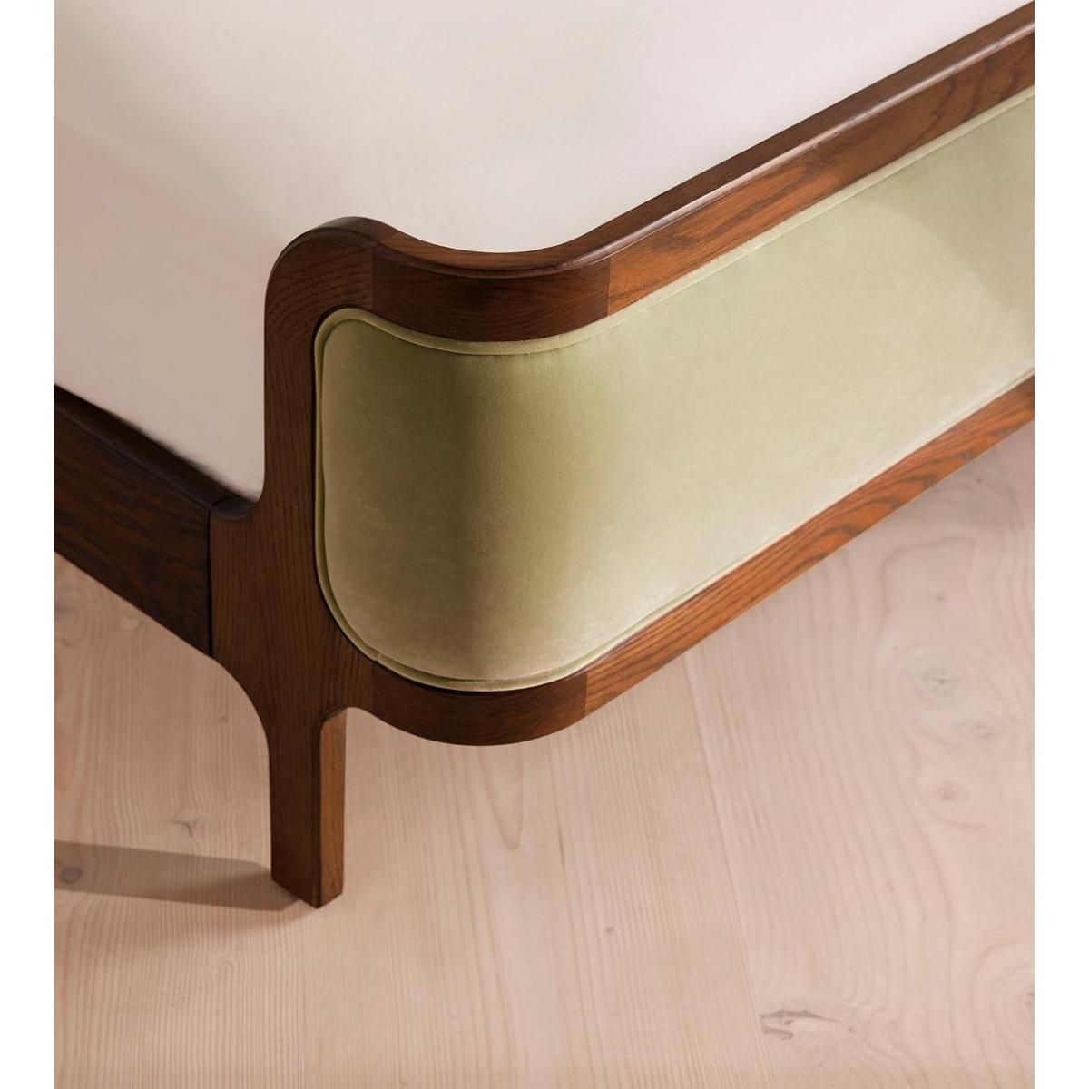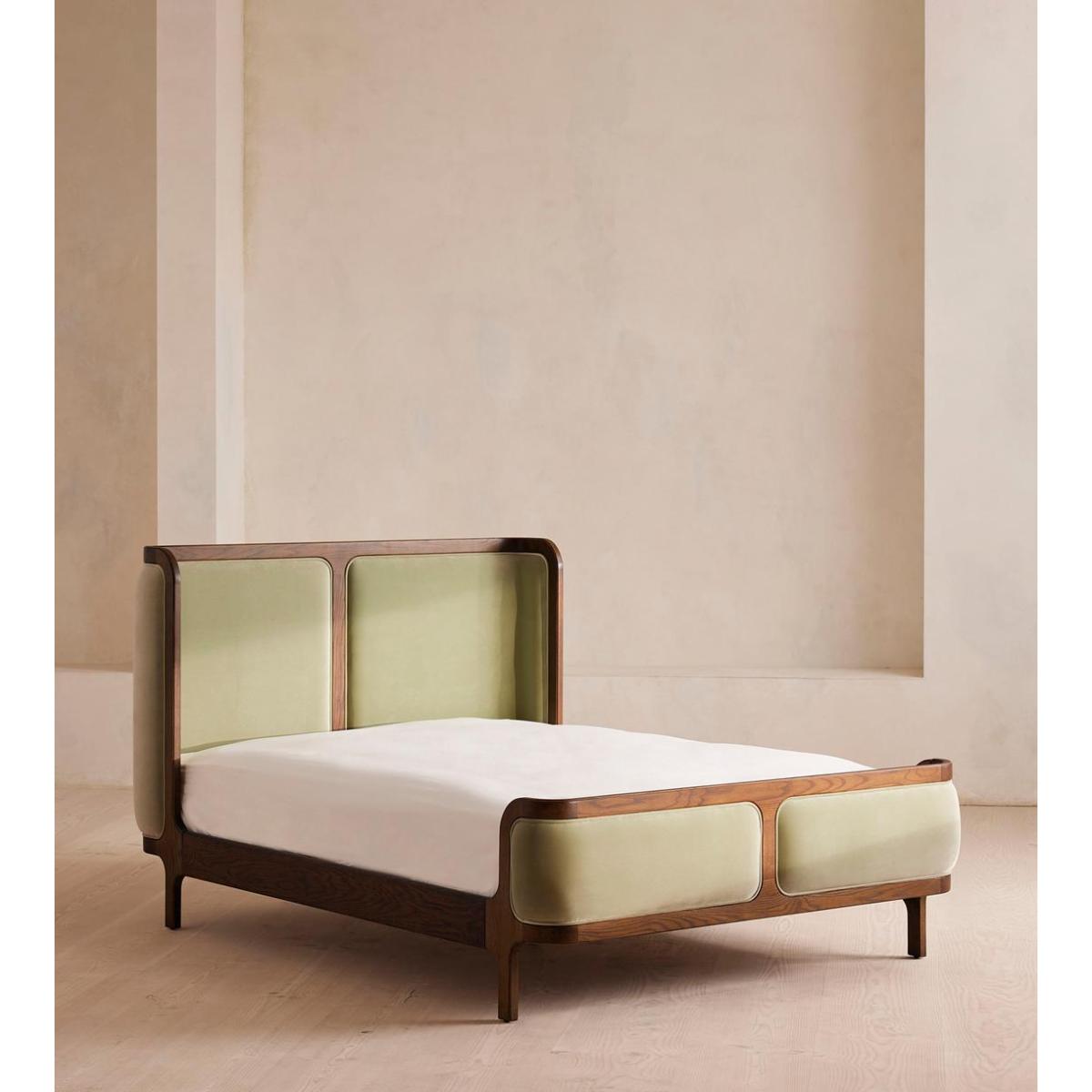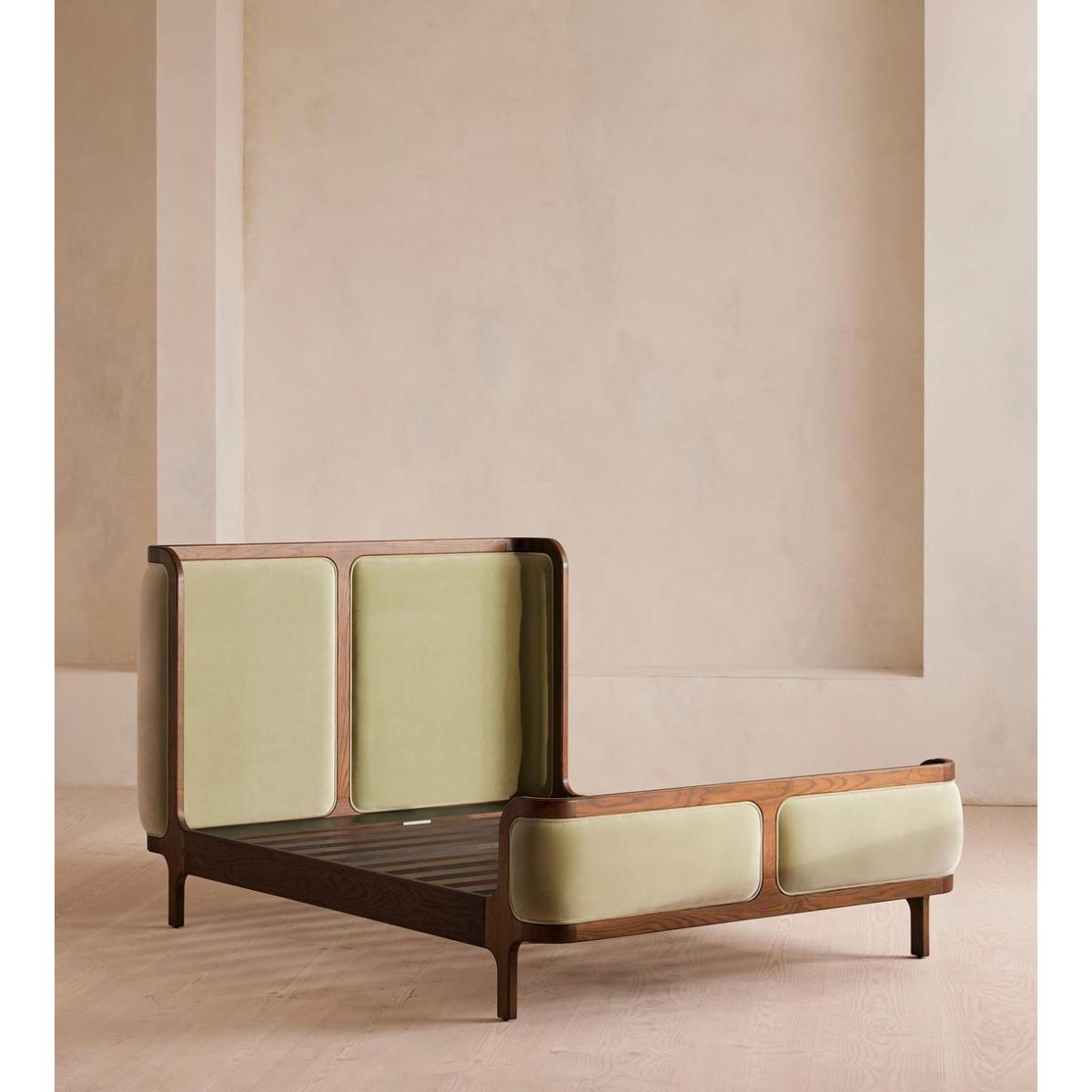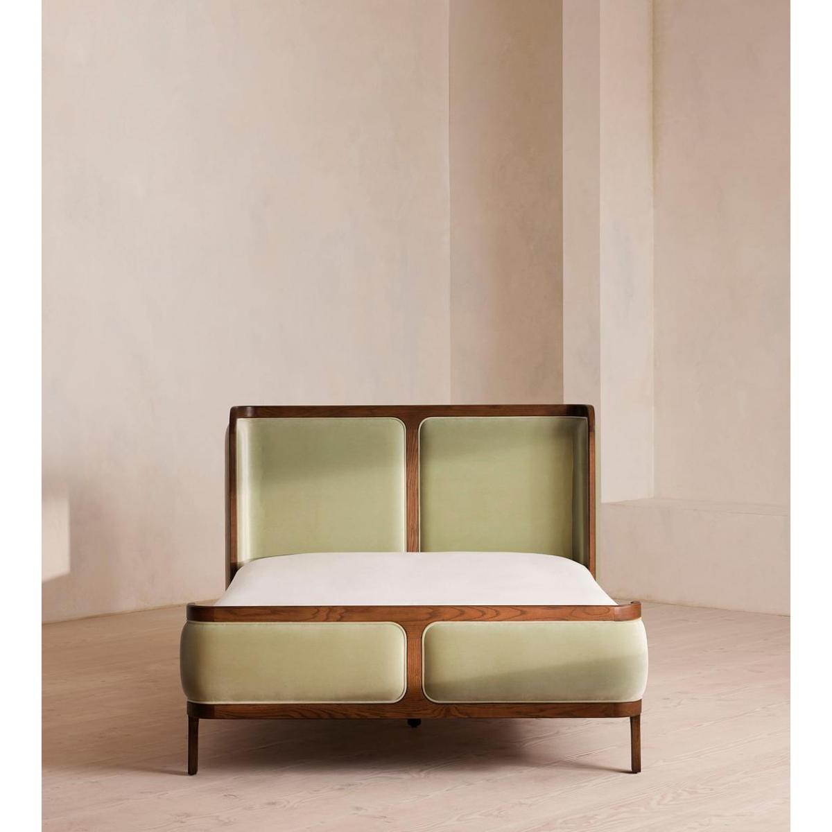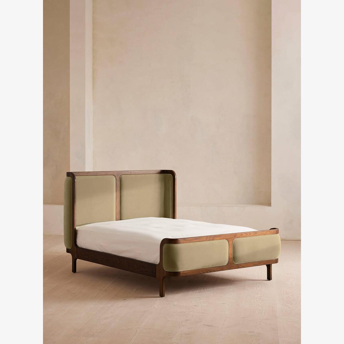 Our Belsa bed creates an enveloping feel with a wraparound headboard and footboard in solid oak and rich velvet upholstery. Taking cues from the mid-century-style beds at White City House, layer with a mix of textiles for a cosy and inviting set-up. Available in all sizes Solid oak frame Wraparound headboard and footboard Rich velvet upholstery Pair with our Hypnos Woolsleeper Pillow Top Mattress Inspired by White City House