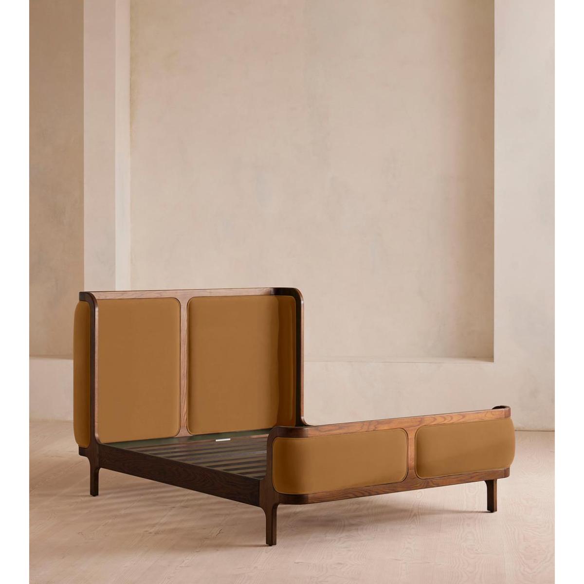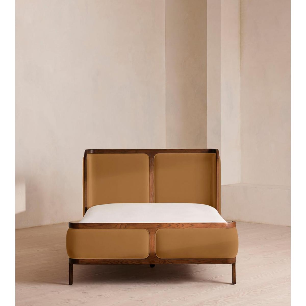 Our Belsa bed creates an enveloping feel with a wraparound headboard and footboard in solid oak and rich velvet upholstery. Taking cues from the mid-century-style beds at White City House, layer with a mix of textiles for a cosy and inviting set-up. Available in all sizes Solid oak frame Wraparound headboard and footboard Rich velvet upholstery Pair with our Hypnos Woolsleeper Pillow Top Mattress Inspired by White City House