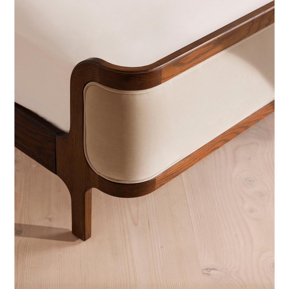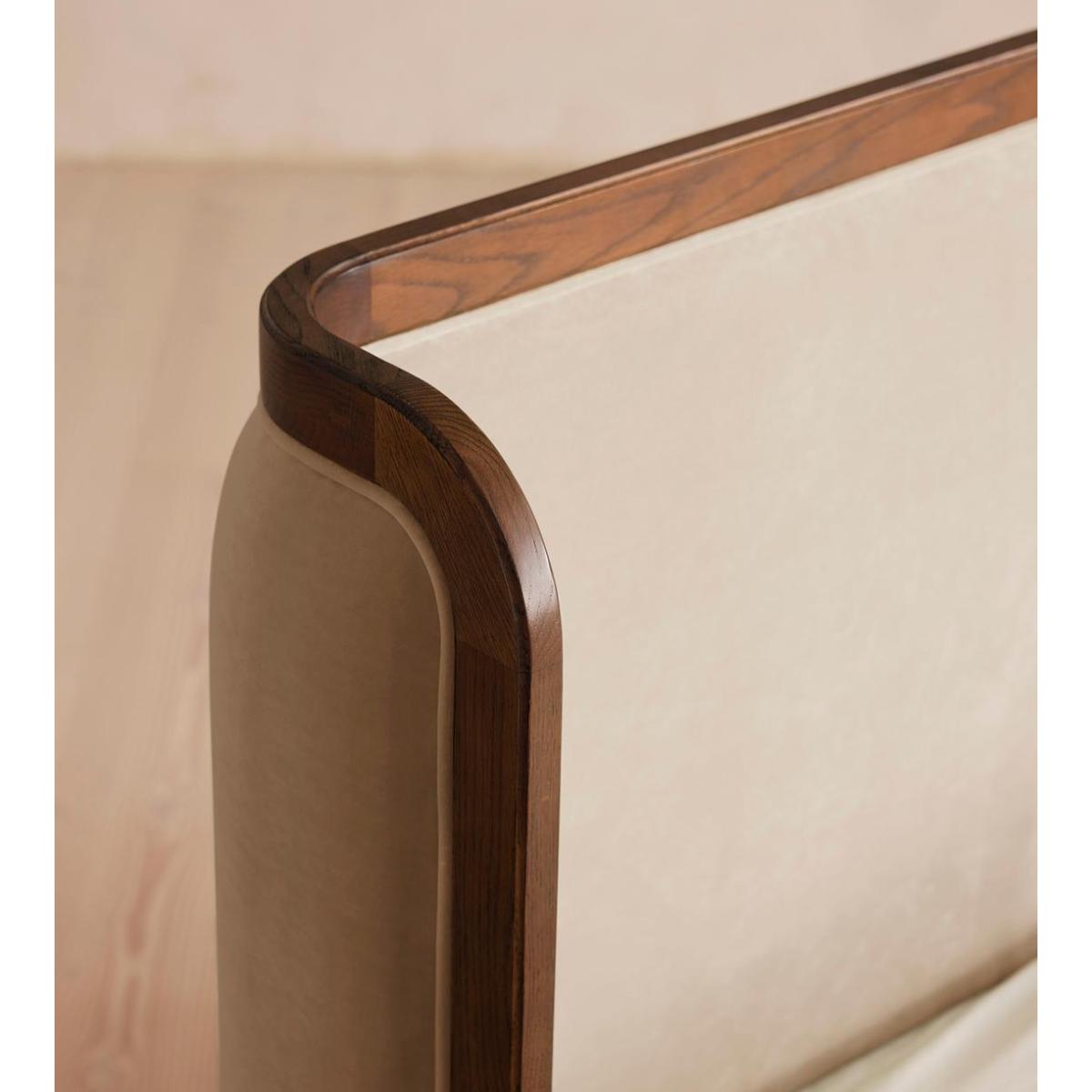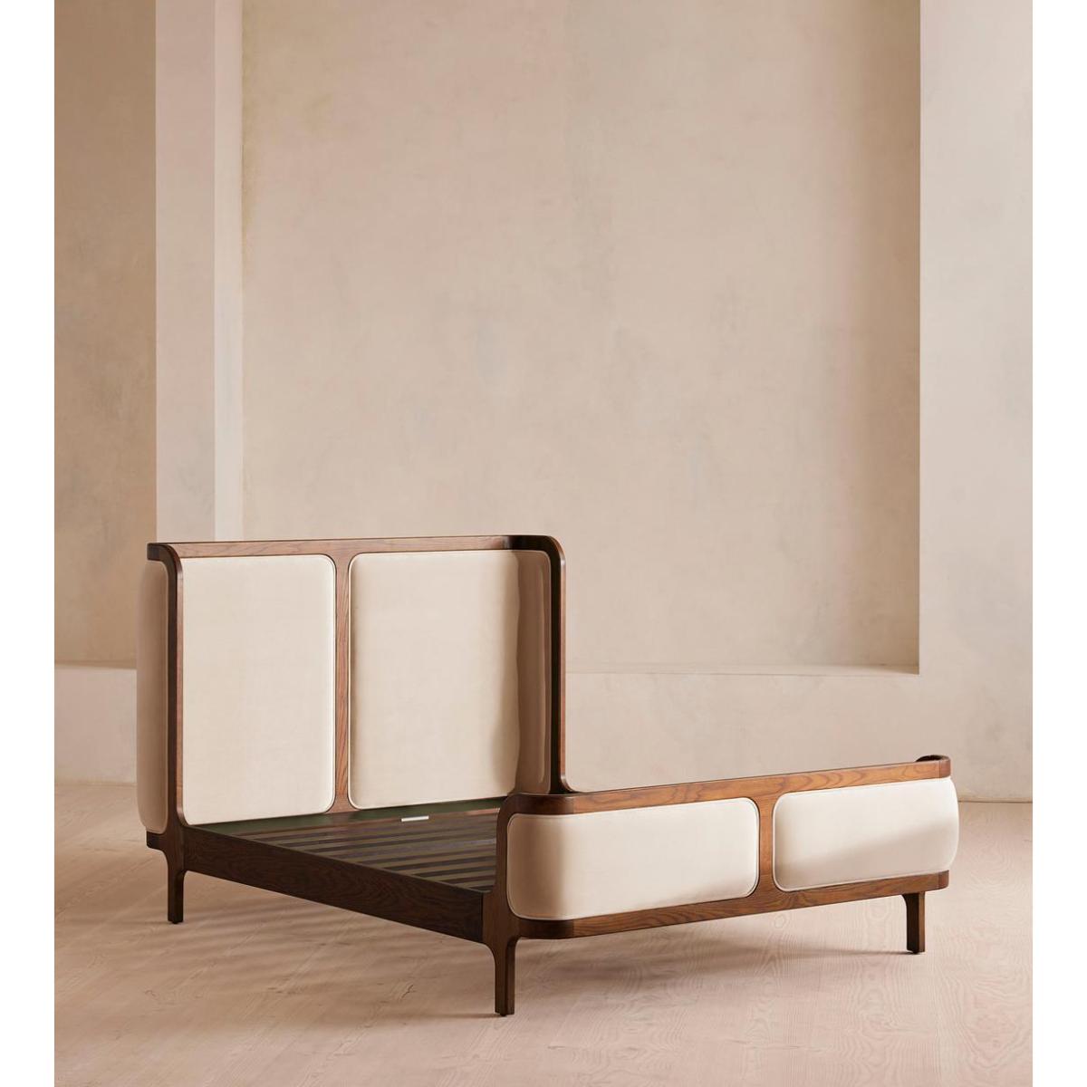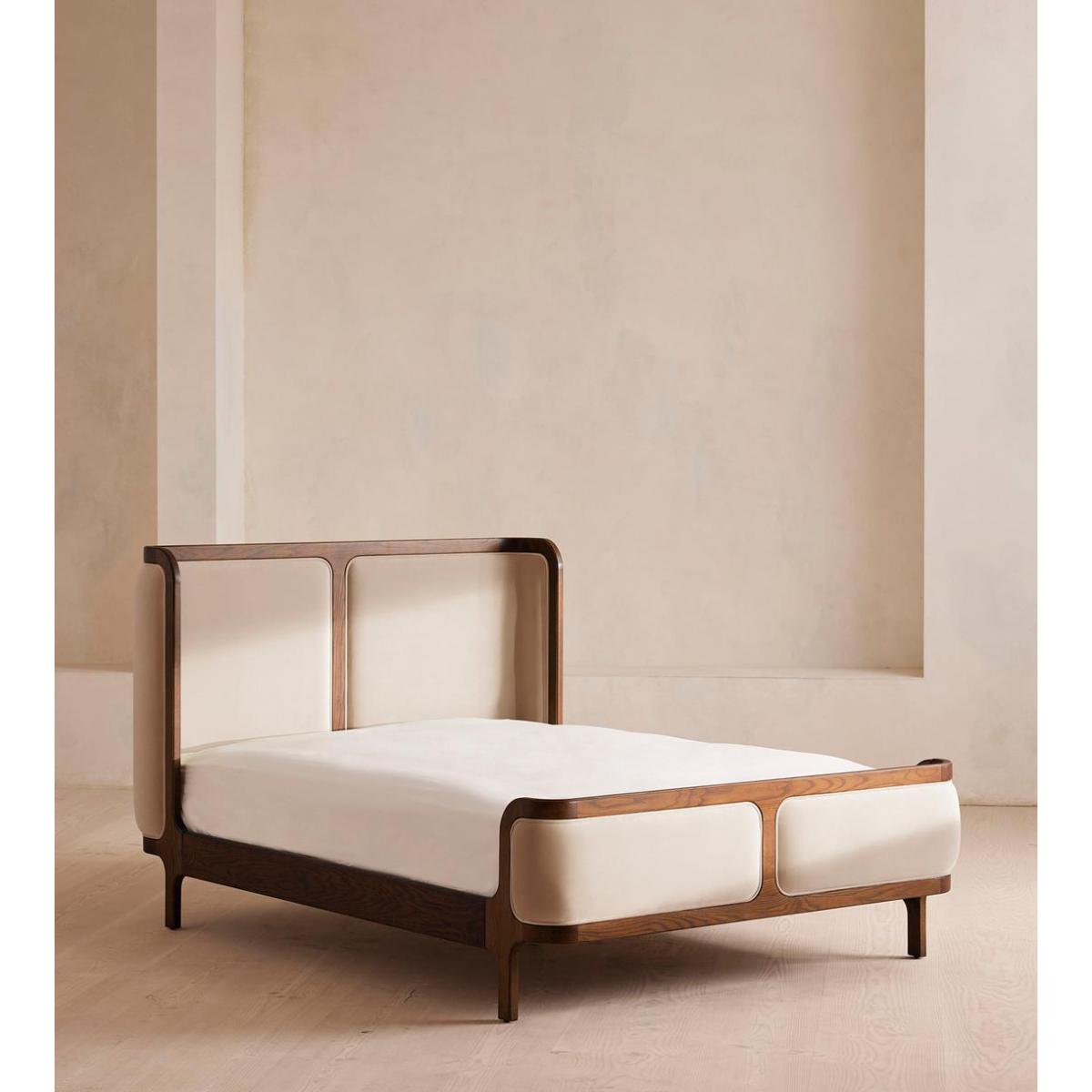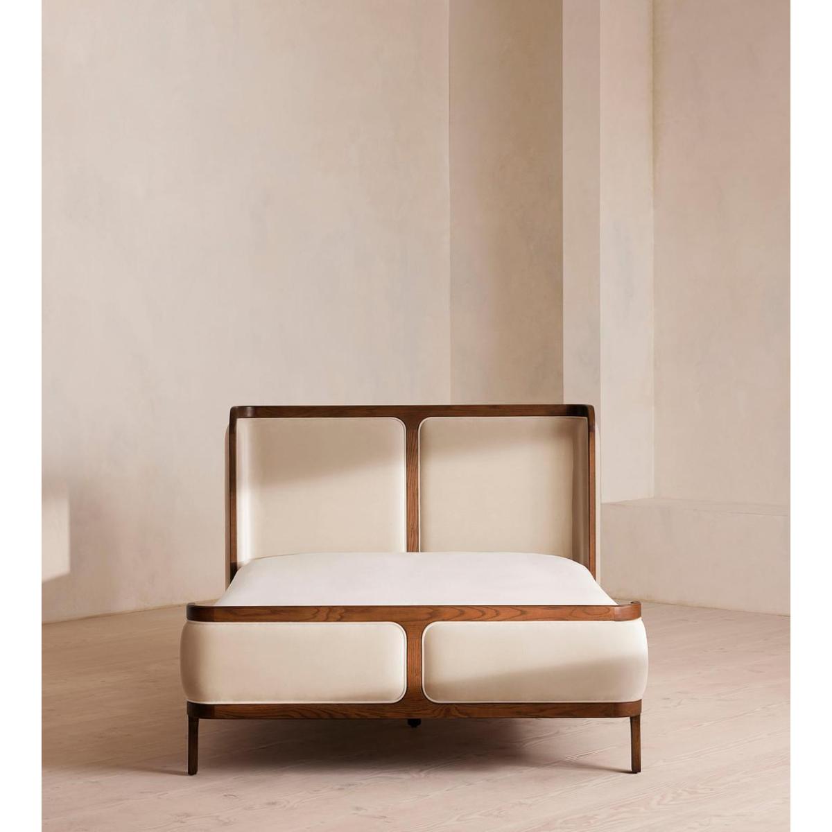 Our Belsa bed creates an enveloping feel with a wraparound headboard and footboard in solid oak and rich velvet upholstery. Taking cues from the mid-century-style beds at White City House, layer with a mix of textiles for a cosy and inviting set-up. Available in all sizes Solid oak frame Wraparound headboard and footboard Rich velvet upholstery Pair with our Hypnos Woolsleeper Pillow Top Mattress Inspired by White City House