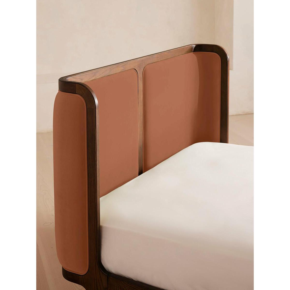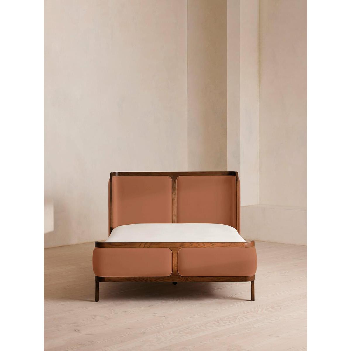 Our Belsa bed creates an enveloping feel with a wraparound headboard and footboard in solid oak and rich velvet upholstery. Taking cues from the mid-century-style beds at White City House, layer with a mix of textiles for a cosy and inviting set-up. Available in all sizes Solid oak frame Wraparound headboard and footboard Rich velvet upholstery Pair with our Hypnos Woolsleeper Pillow Top Mattress Inspired by White City House