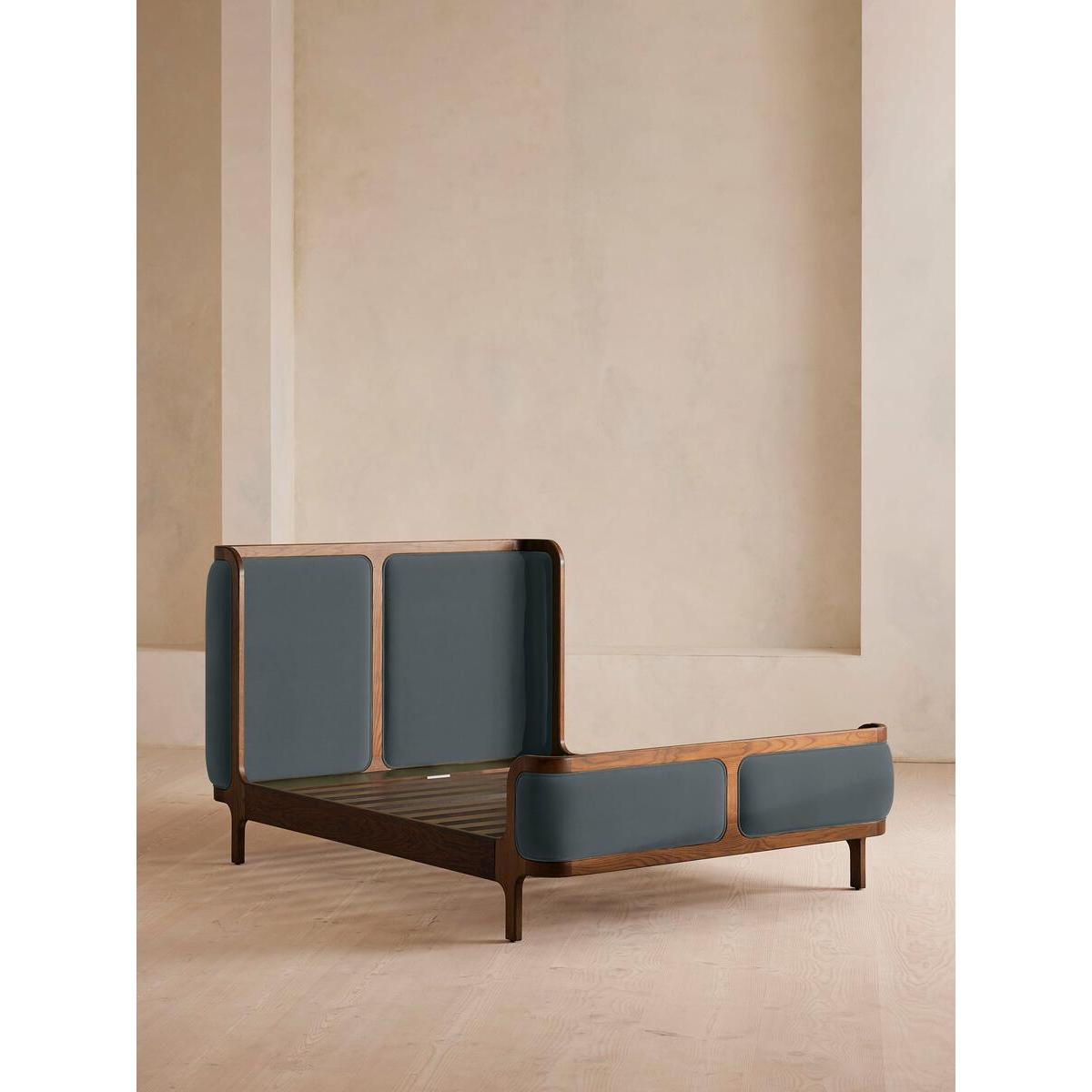 Our Belsa bed creates an enveloping feel with a wraparound headboard and footboard in solid oak and rich velvet upholstery. Taking cues from the mid-century-style beds at White City House, layer with a mix of textiles for a cosy and inviting set-up. Available in all sizes Solid oak frame Wraparound headboard and footboard Rich velvet upholstery Pair with our Hypnos Woolsleeper Pillow Top Mattress Inspired by White City House