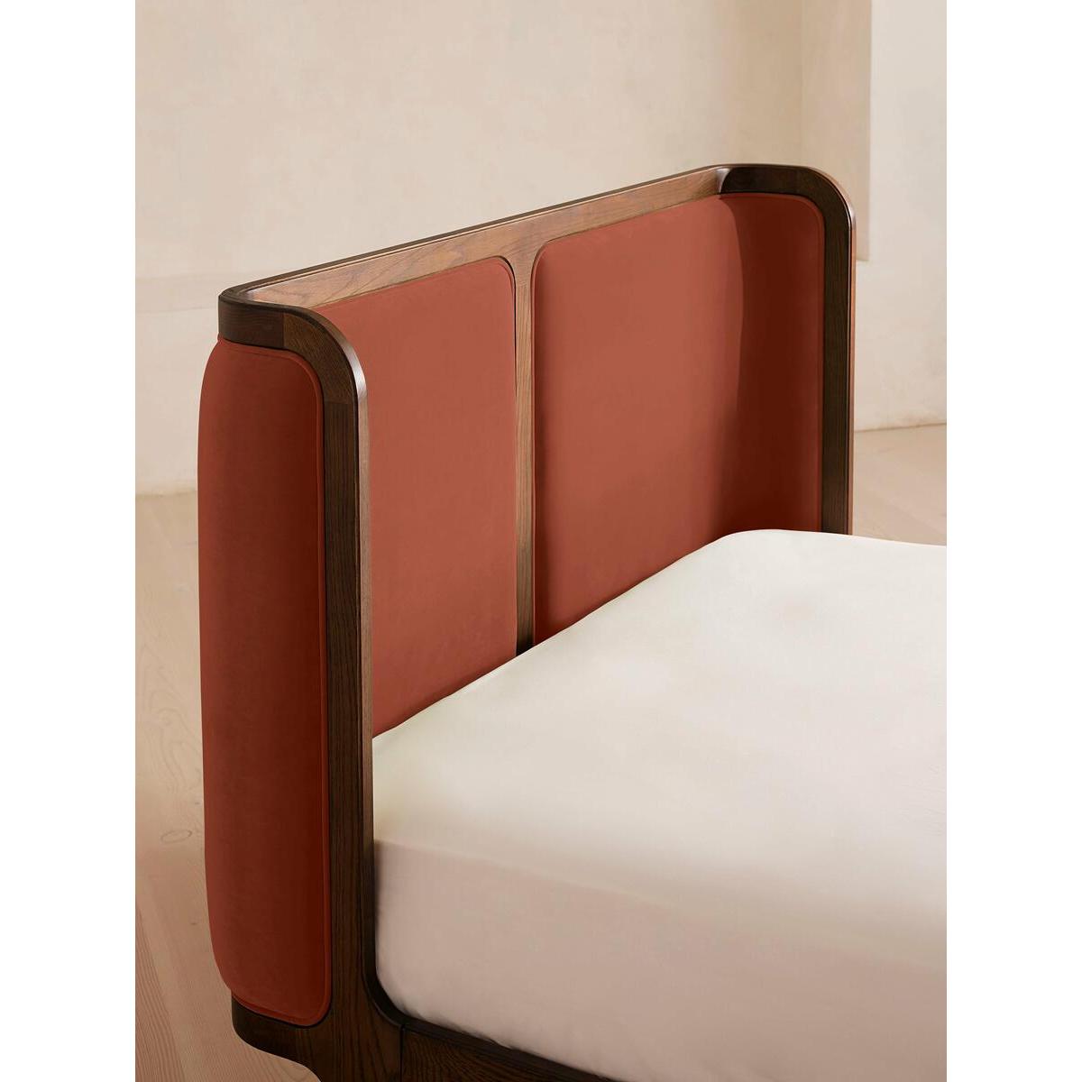 The Belsa bed in velvet and rust is a statement piece that combines luxury with comfort. I love its rich colour and plush texture, which make it a versatile anchor in both contemporary and tradition-inspired interiors. It works particularly well in warm, cosy schemes or neutral settings that could benefit from a pop of colour. To style it effectively, consider pairing it with soft, layered bedding in complementary tones such as muted creams or warm browns, and accessorise with textured cushions or throws to enhance its tactile appeal. For a more modern look, keep surrounding furniture sleek and minimalist, allowing the bed to be the focal point of the room.