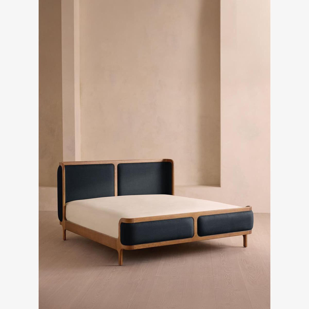 I love this bed for its sleek, contemporary design that balances warmth and sophistication. The light oak frame works beautifully in both modern and transitional interiors, adding a touch of natural elegance. The linen Indigo finish gives it a subtle colour pop without overwhelming the space, making it versatile for various colour schemes. It’s a great choice for those looking to add a statement piece that remains understated. For styling, pair it with textured bedding and minimal accessories to highlight its craftsmanship, or combine with layered textiles and layered lighting for a cosy, inviting bedroom. Practical tips include keeping bedside tables simple to allow the bed to be the focal point or adding soft, layered rugs underneath for extra comfort and visual interest.