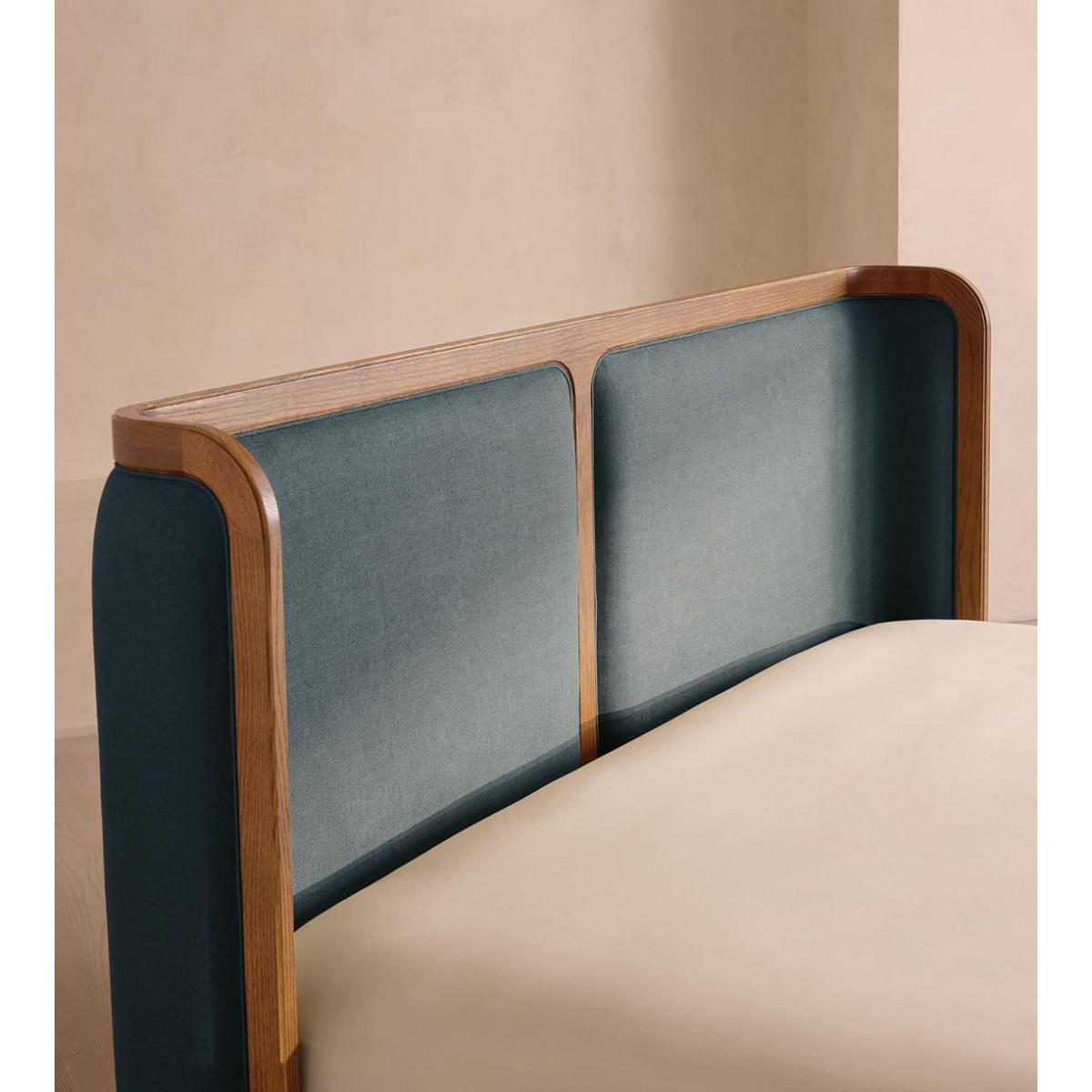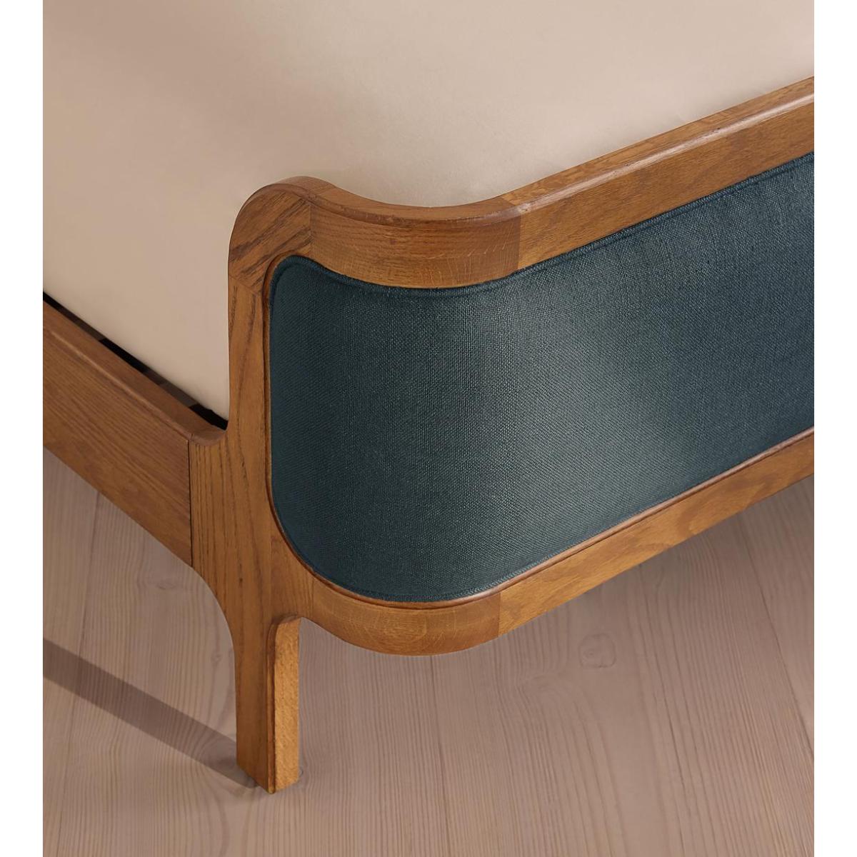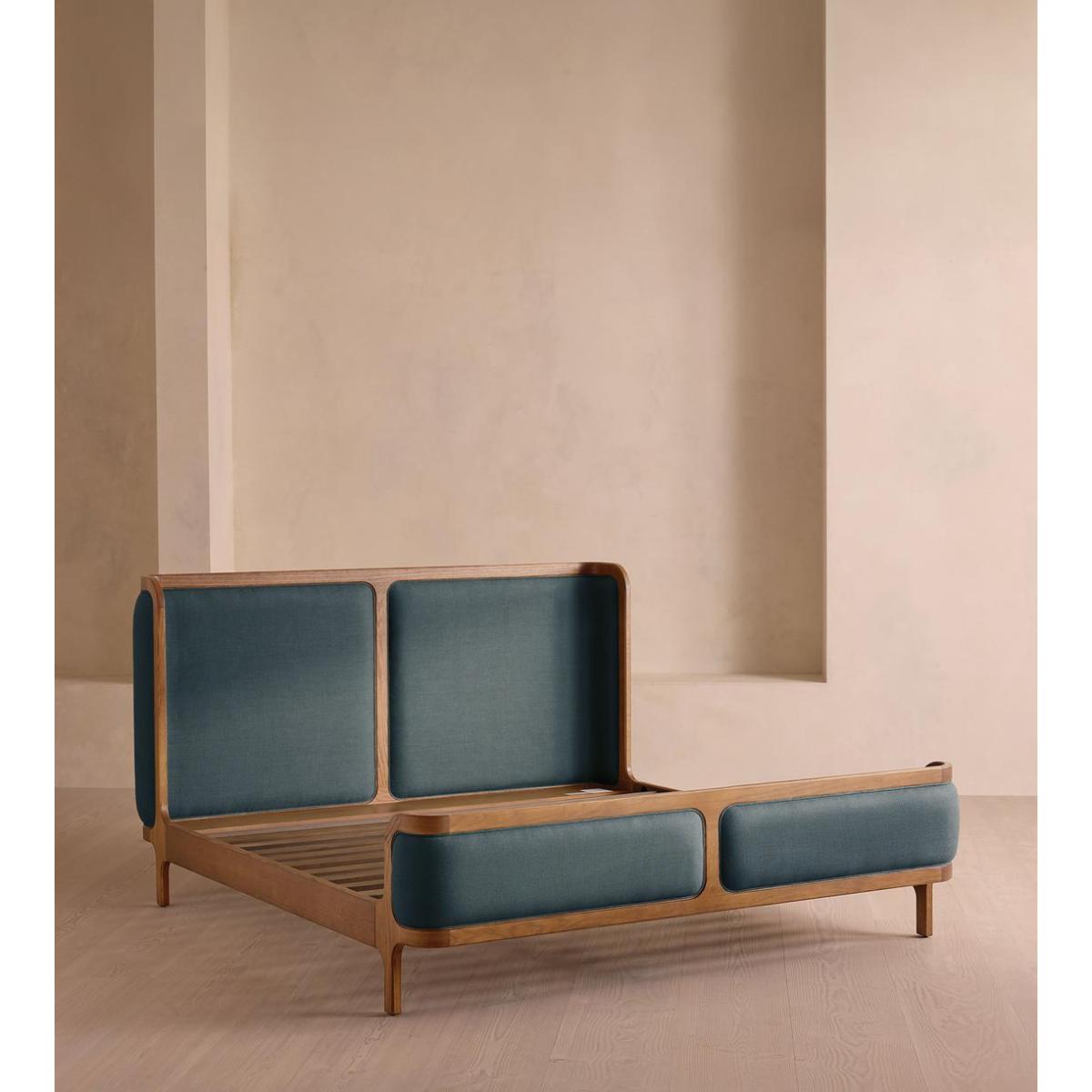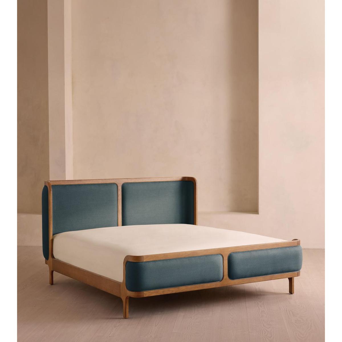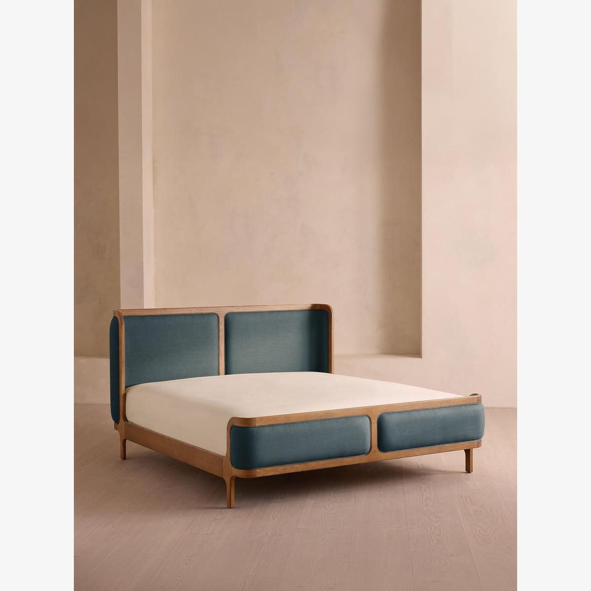 Belsa Bed, Light Oak, Superking, Linen, Prussian Blue
