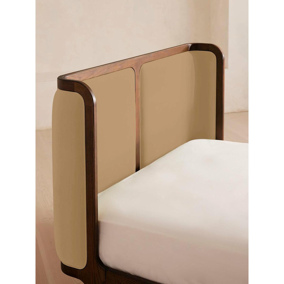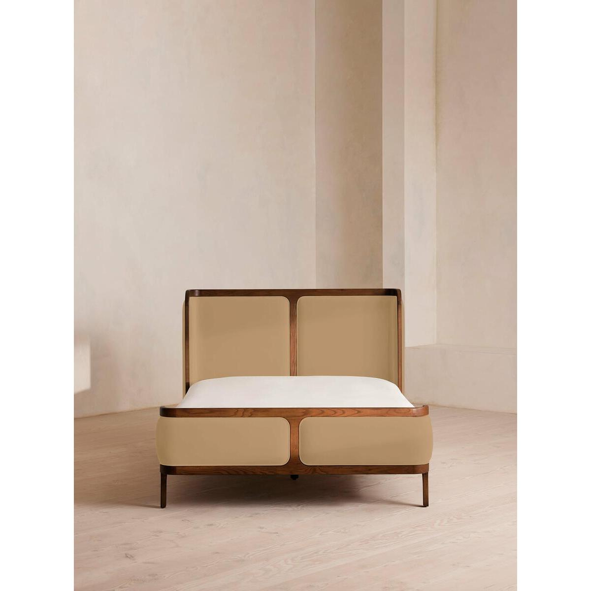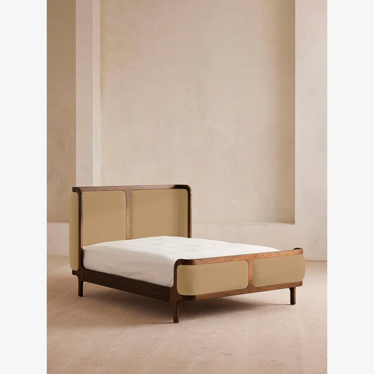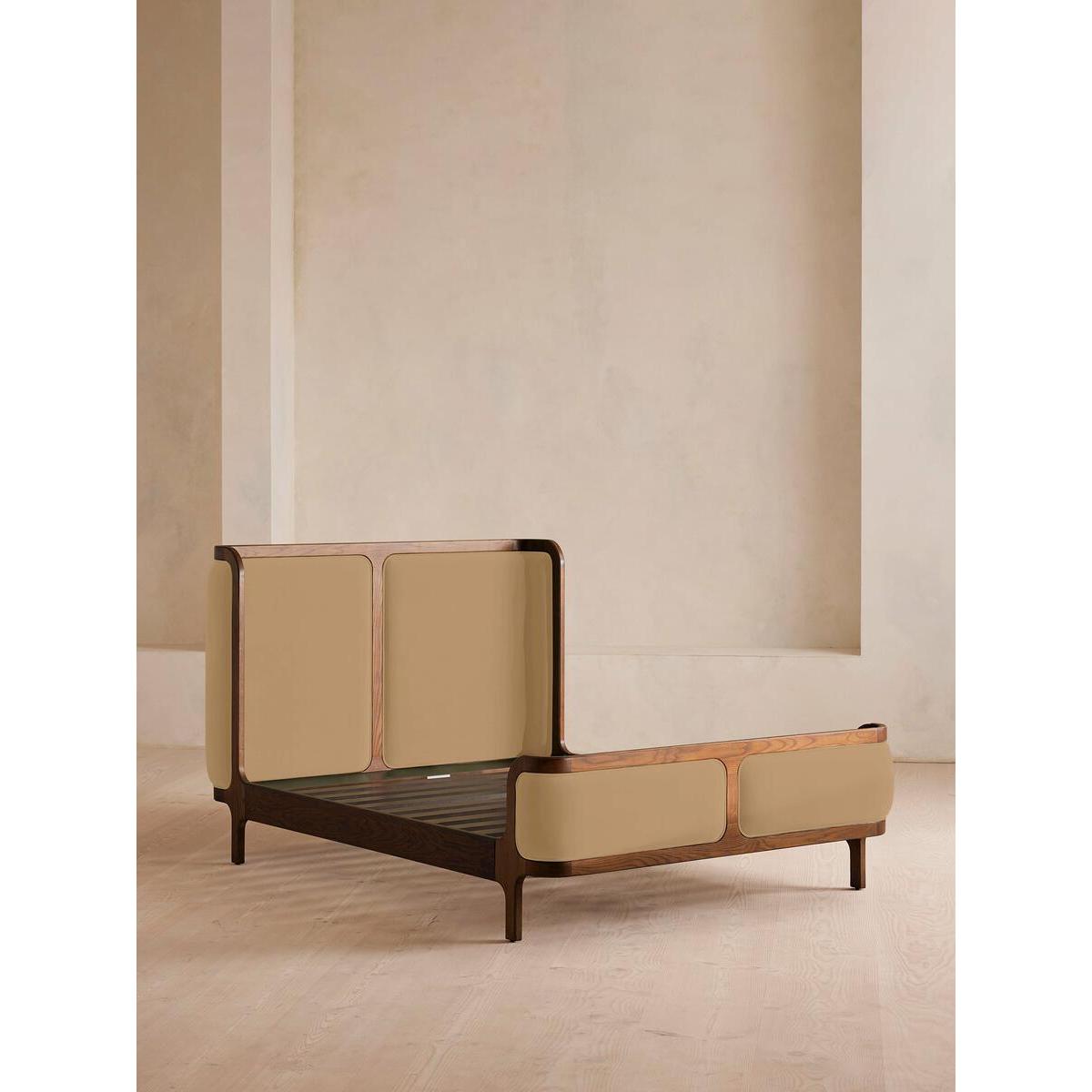 Our Belsa bed creates an enveloping feel with a wraparound headboard and footboard in solid oak and rich velvet upholstery. Taking cues from the mid-century-style beds at White City House, layer with a mix of textiles for a cosy and inviting set-up. Available in all sizes Solid oak frame Wraparound headboard and footboard Rich velvet upholstery Pair with our Hypnos Woolsleeper Pillow Top Mattress Inspired by White City House