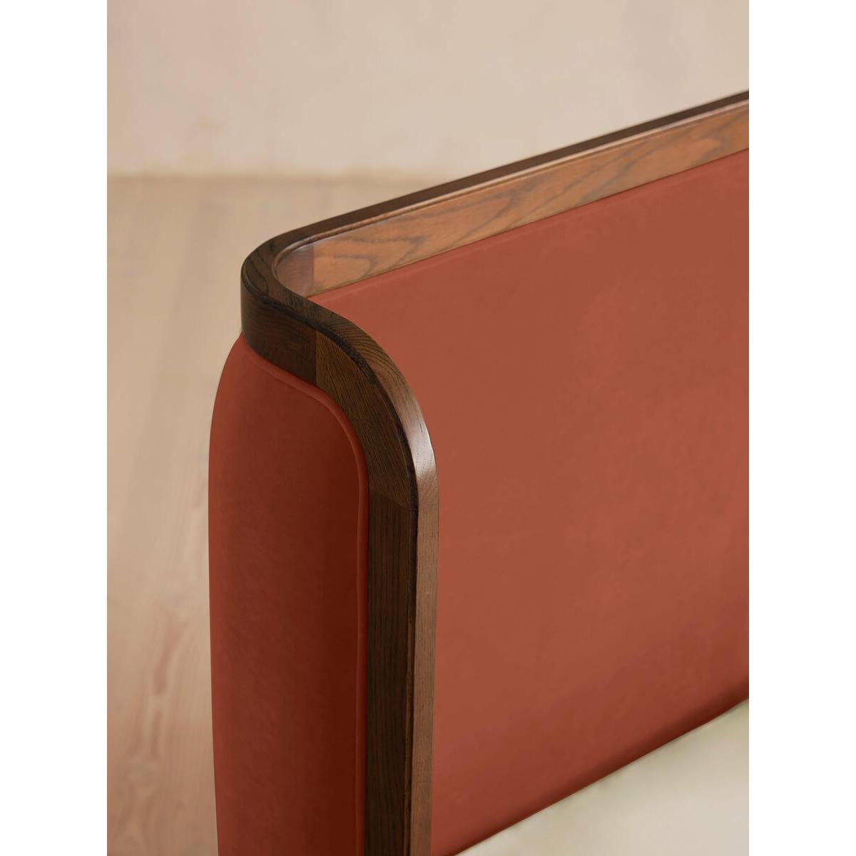 I love this bed for its luxurious velvet finish and rich rust hue, which immediately adds warmth and texture to any bedroom. It works particularly well in interiors with a mid-century or modern aesthetic, especially when paired with neutral tones, warm woods, or brass accents. Practically, it’s a statement piece that invites layering; consider soft, cosy bedding, textured cushions, and minimalist bedside lamps to create a balanced look. Its clean lines and understated elegance make it versatile, so it fits seamlessly into eclectic, contemporary, or even traditional spaces that could benefit from a touch of plush sophistication.