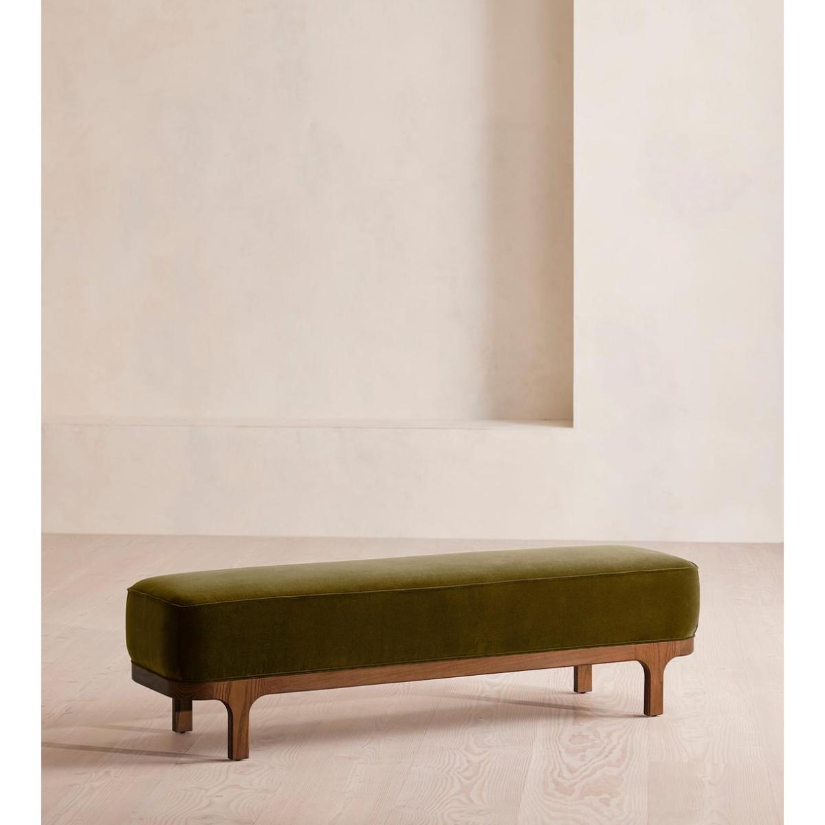 I’m particularly fond of the olive velvet bench for the way its low-profile shape and warm wooden base slot effortlessly into mid-century, Scandi or contemporary schemes. The rich green velvet brings a tactile, yet restrained, colour punch that works beautifully against soft neutrals, natural timbers or even deeper jewel tones. Stylist tip: pop it at the foot of a bed with a folded throw draped across one end, or situate it in an hallway under a slim console to introduce extra seating - add baskets underneath for neat, concealed storage.