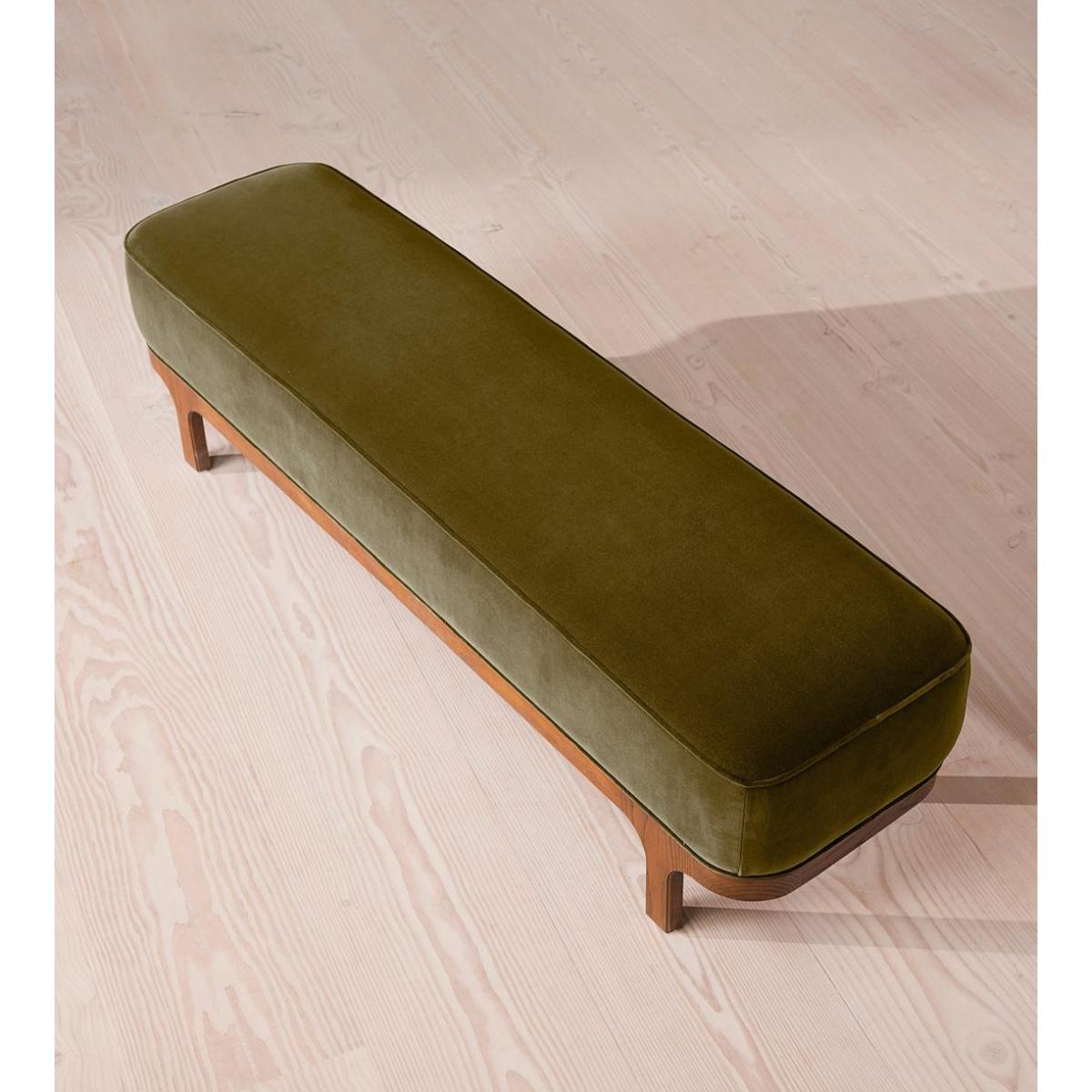 An extension of our Belsa bed range, this bench is ideal either in the hallway or at the end of the bed as an additional place to rest. A feather-wrapped cushion seat provides extra comfort, while rich velvet upholstery and a solid oak frame ties in with the scheme. Upholstered bench Solid oak frame Feather-wrapped cushion seat Upholstered in rich velvet Available in a range of colours and fabrics Inspired by White City House