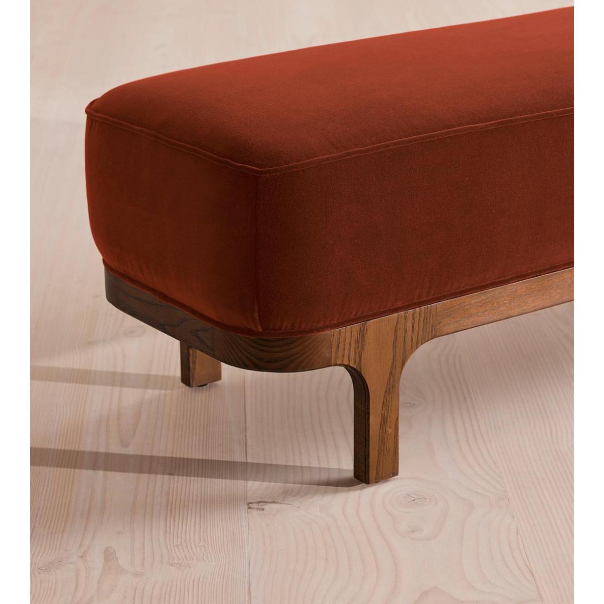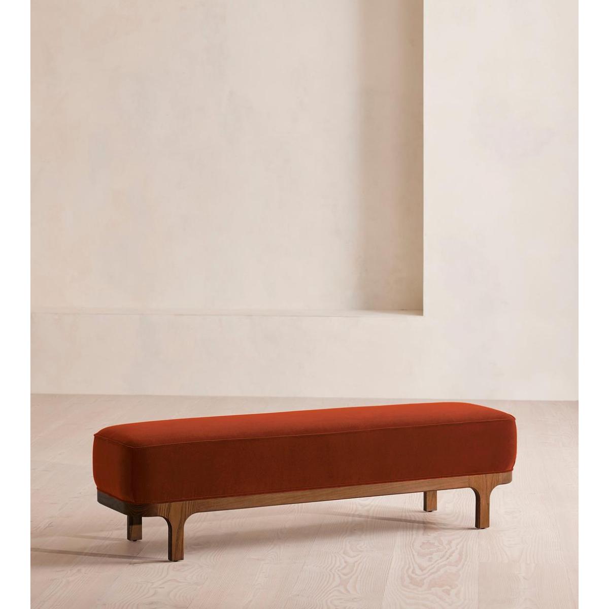 I’m a fan of this rust velvet bench for its rich, warm colour and soft texture - it instantly lifts a neutral room without overwhelming the scheme. The clean, rounded silhouette and subtle wood legs give it a modern-meets-mid-century feel that works equally well at the foot of a bed, in an entrance hall or alongside a living-room sofa. Styling-wise, pair it with a natural-fibre rug or crisp cushions in contrasting shades (deep navy or muted sage work beautifully) and keep surrounding décor pared back to let the colour sing. Its low profile also makes it ideal for creating a cosy seating nook when topped with a lightweight throw or two.