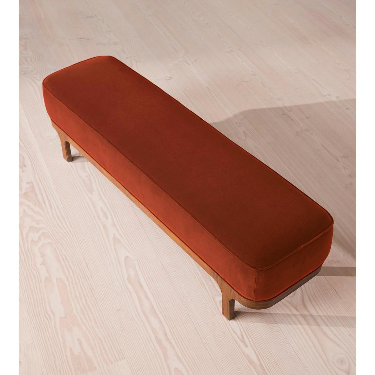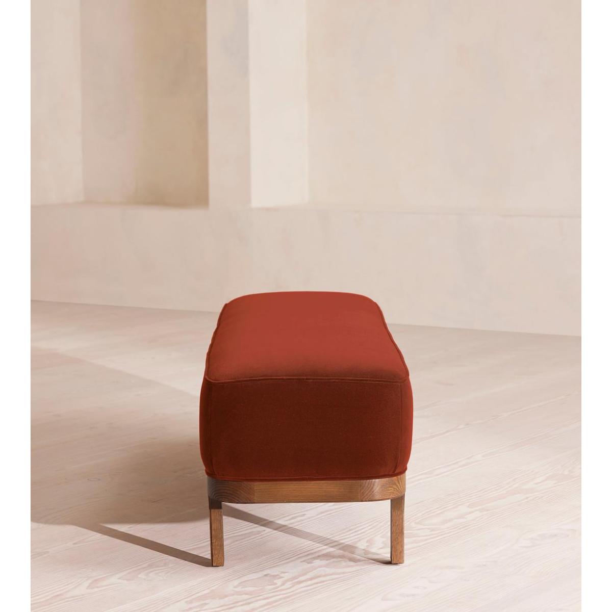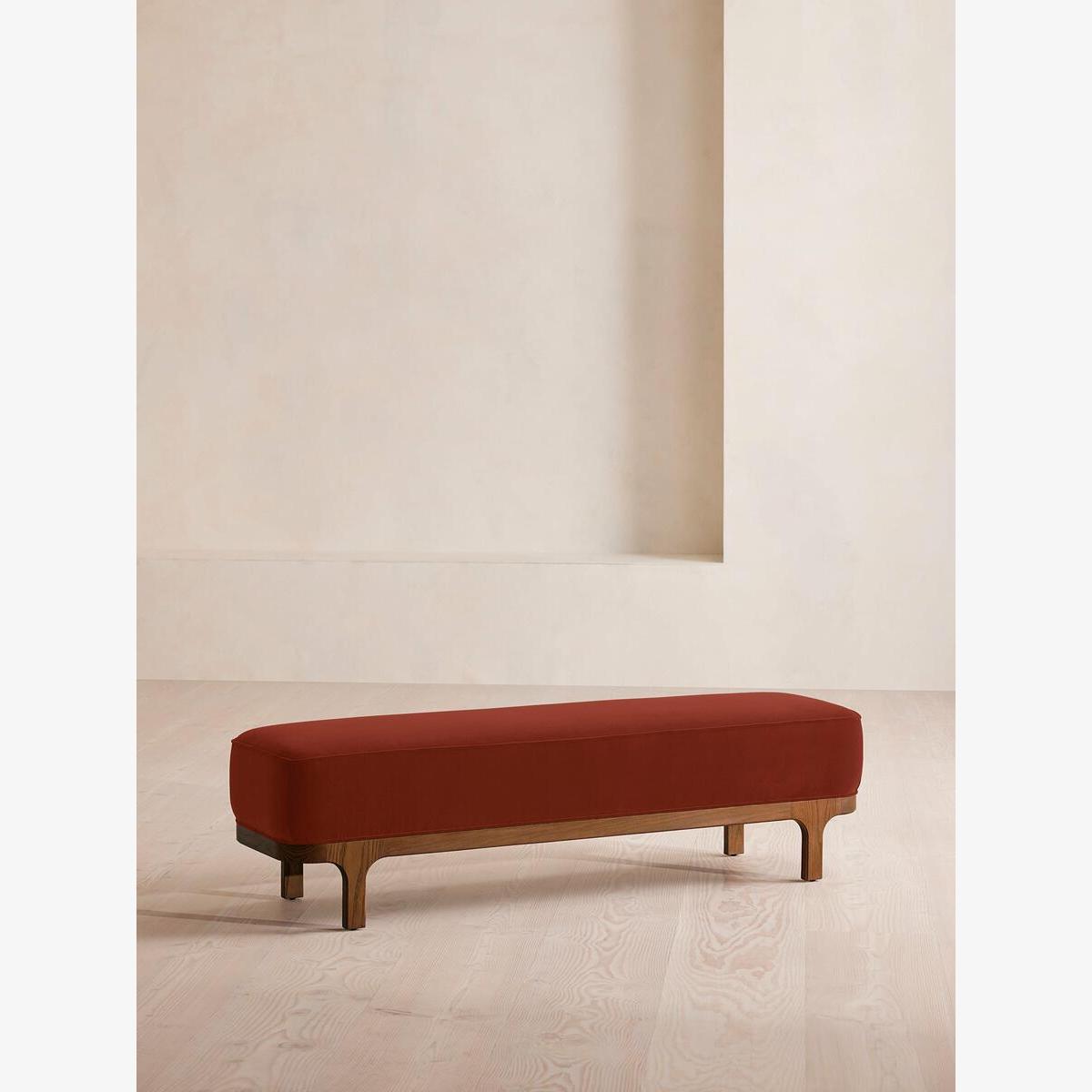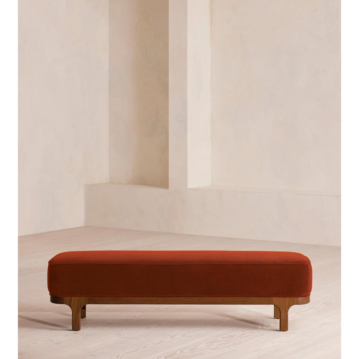 An extension of our Belsa bed range, this bench is ideal either in the hallway or at the end of the bed as an additional place to rest. A feather-wrapped cushion seat provides extra comfort, while rich velvet upholstery and a solid oak frame ties in with the scheme. Upholstered bench Solid oak frame Feather-wrapped cushion seat Upholstered in rich velvet Available in a range of colours and fabrics Inspired by White City House