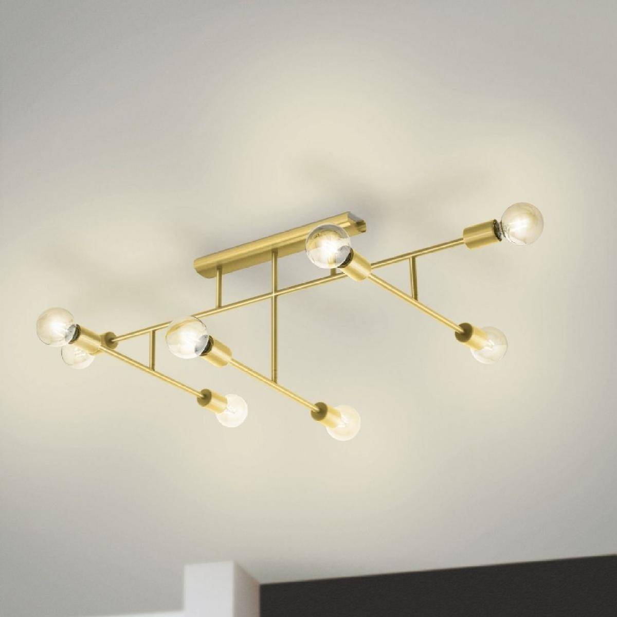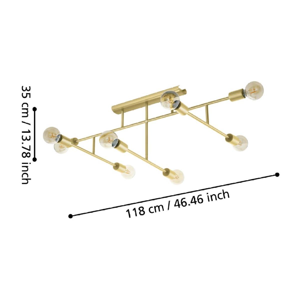 The Belsiana 1 ceiling light features a metal framework in brushed brass with eight exposed lamp holders. The two lower arms are adjustable, so they can be rearranged to customise the look of the light and create the perfect lighting for your living space. The ceiling light blends seamlessly with the trendy modern style, providing stylish lighting for your home, whether it’s in the kitchen, living room, dining room, hallway or bedroom.. The pictured filament lightbulbs are not included. The product has E27 lamp holders and requires 8 x E27 lightbulbs.