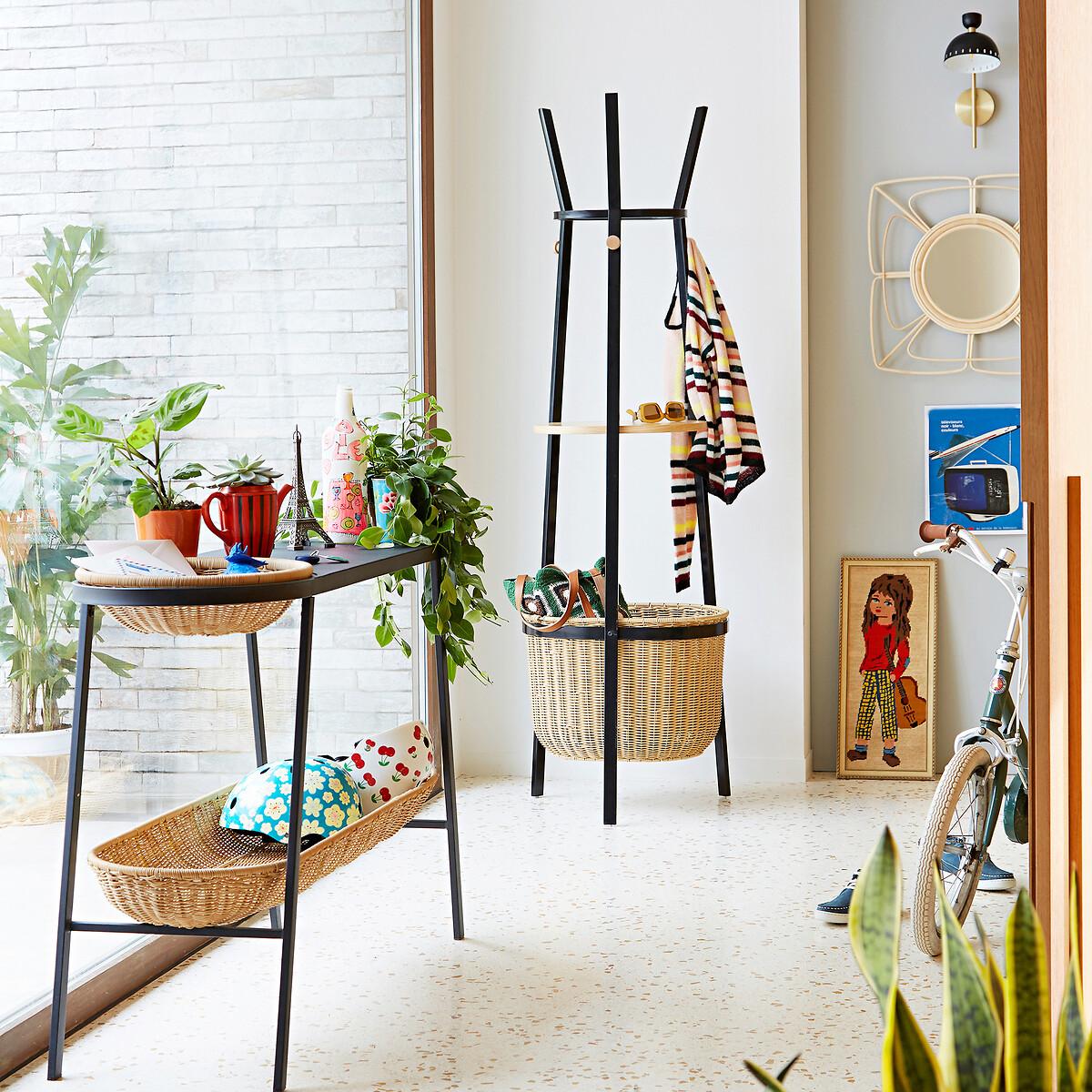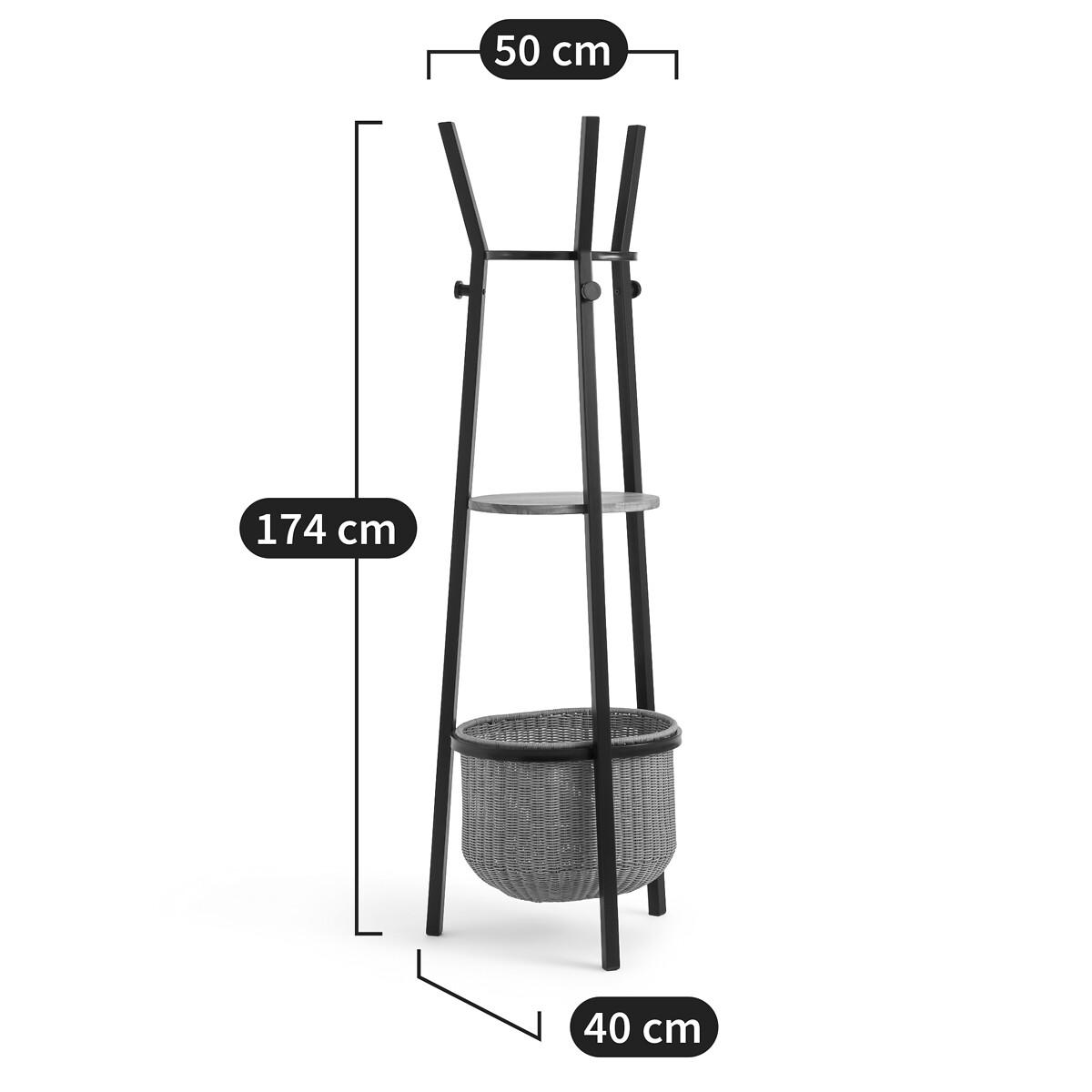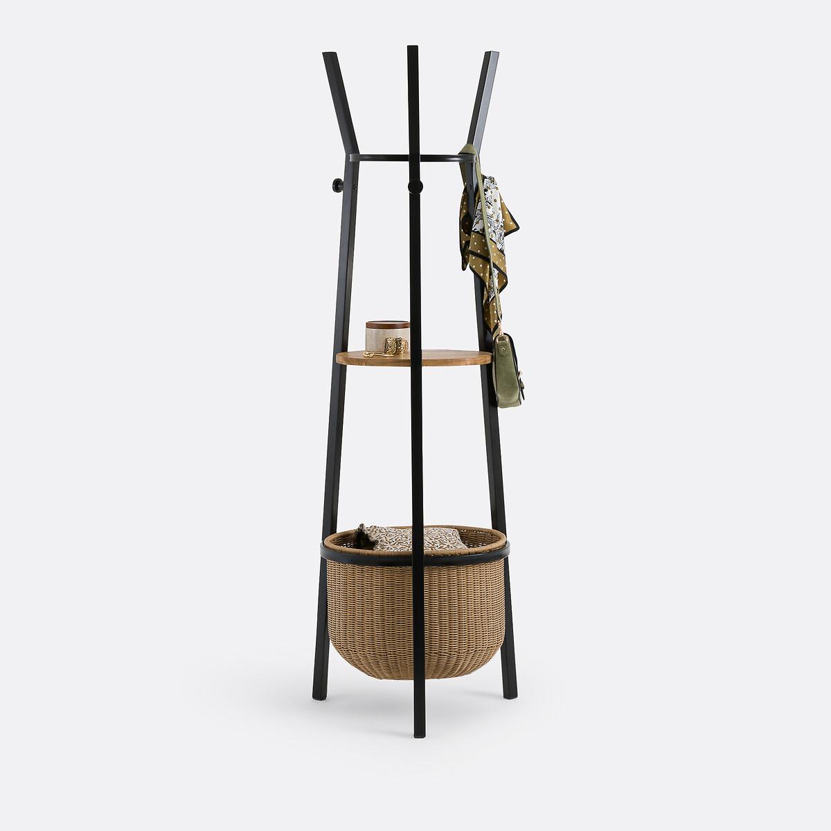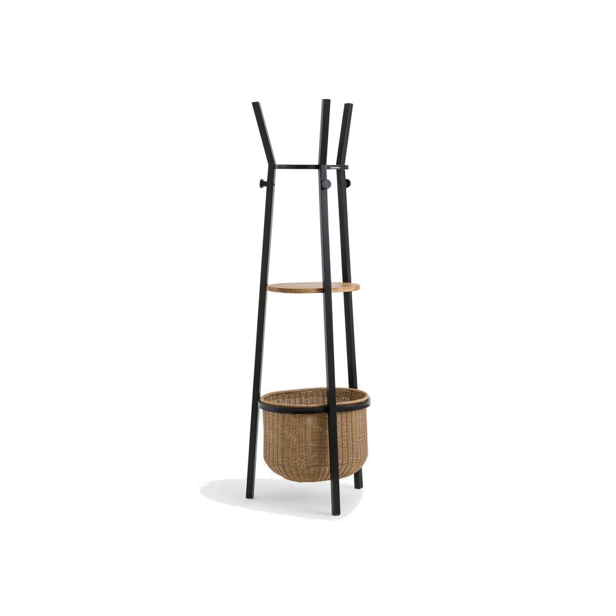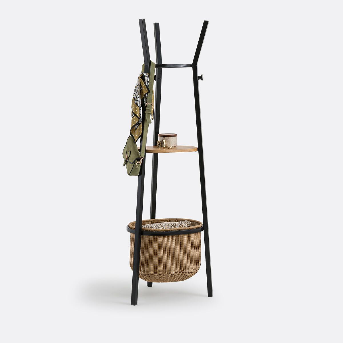 Aesthetic and functional, the Belti coat rack is simply essential in an entrance or office. Designed by La Redoute Interiors. Product Details • Structure in black tinted steel with epoxy finish • 3 coat hooks in black stained laminated acacia, FSC® certified • Oval shelf in laminated acacia oiled white effect finish, FSC® certified • Steel basket coated with thick resin wicker. 3mm, natural colour. Dimensions • Width: 50cm • Height: 174cm • Depth: 40cm • Weight: 10.8kgDelivery:. Sold pre-assembled. Available for home delivery. Note! Please check that all access points are large enough to accommodate your delivery (doors, stairs, lifts).Dimensions and weight of parcel2 parcels • W185 x H19 x D2cm 9.3kg • W61 x H43 x D51cm 8.7kg