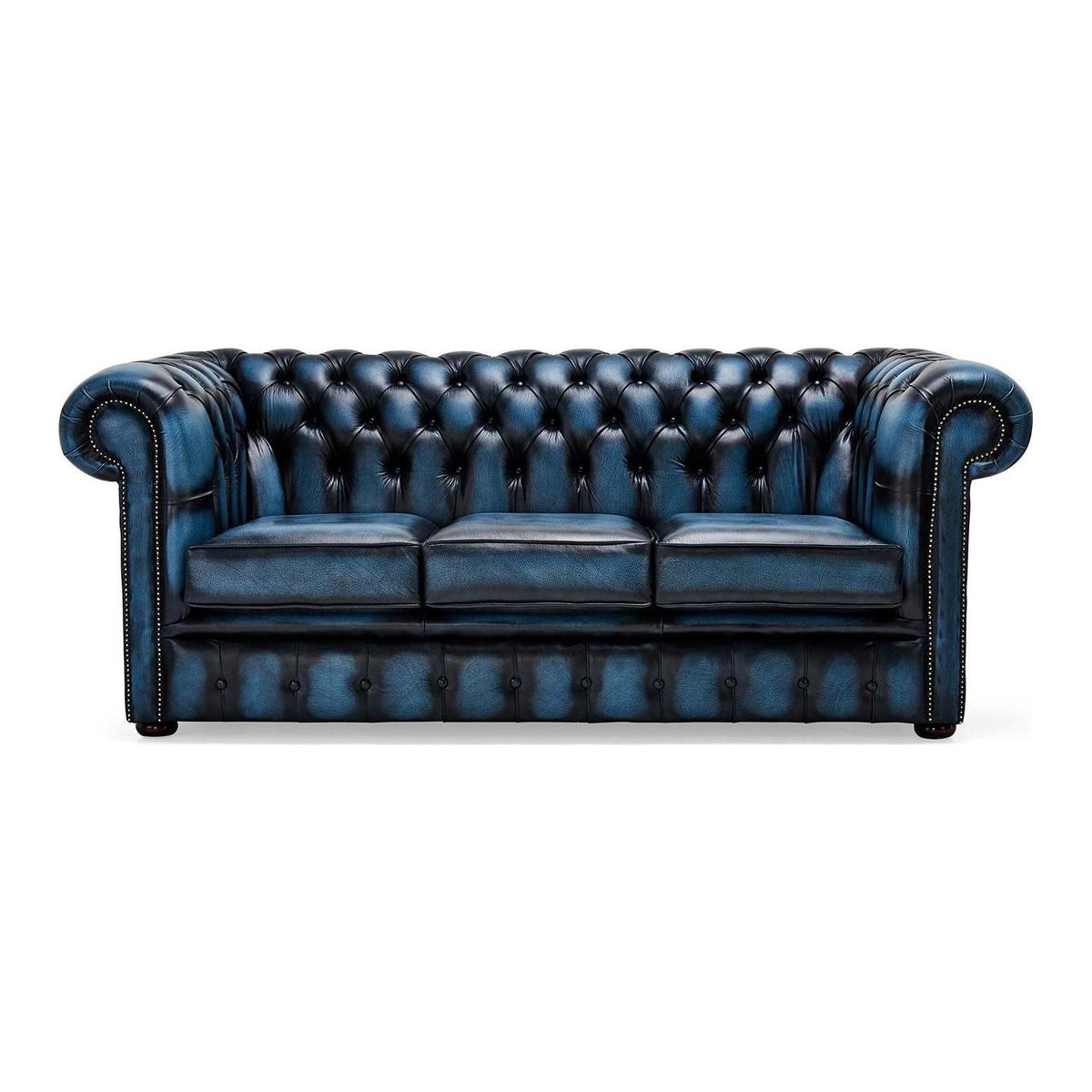 The Belvedere Chesterfield 3 Seater Antique Leather Sofa is part of a unique range of made to order sofas that blend classic design which utilises the very best of British craftsmanship. \n\nThe Belvedere Range comes in a host of upholstery and colours options each featuring the famous button back, scroll arms and hand tacked studded detailing. With foam cushion filling and deep set sprung seats, each piece from this range proves to be comfortable and is supported by beautiful and sturdy mahogany feet. \n\nThe solid hardwood frame is glued, screwed and dowelled for support. The real leather upholstery is both luxurious and durable and comes in a range of both vibrant and neutral colours. The compact nature of the 2 seater allows you to add elegance to rooms where space is it a premium.\n\nPlease note, unfortunately we cannot deliver this item to the Channel Islands.