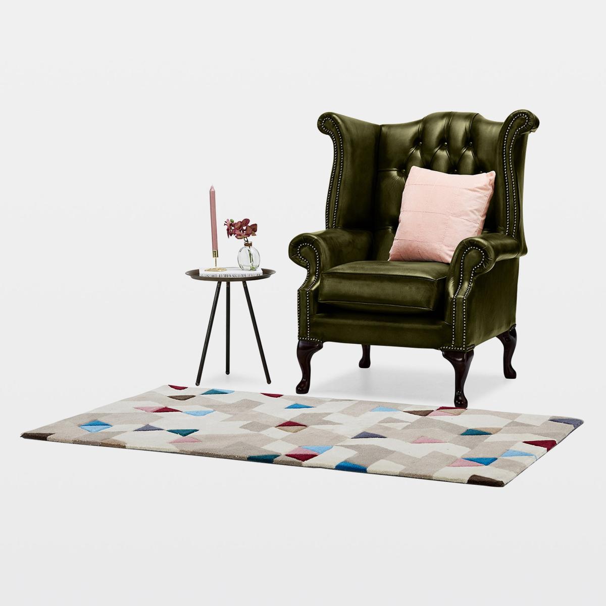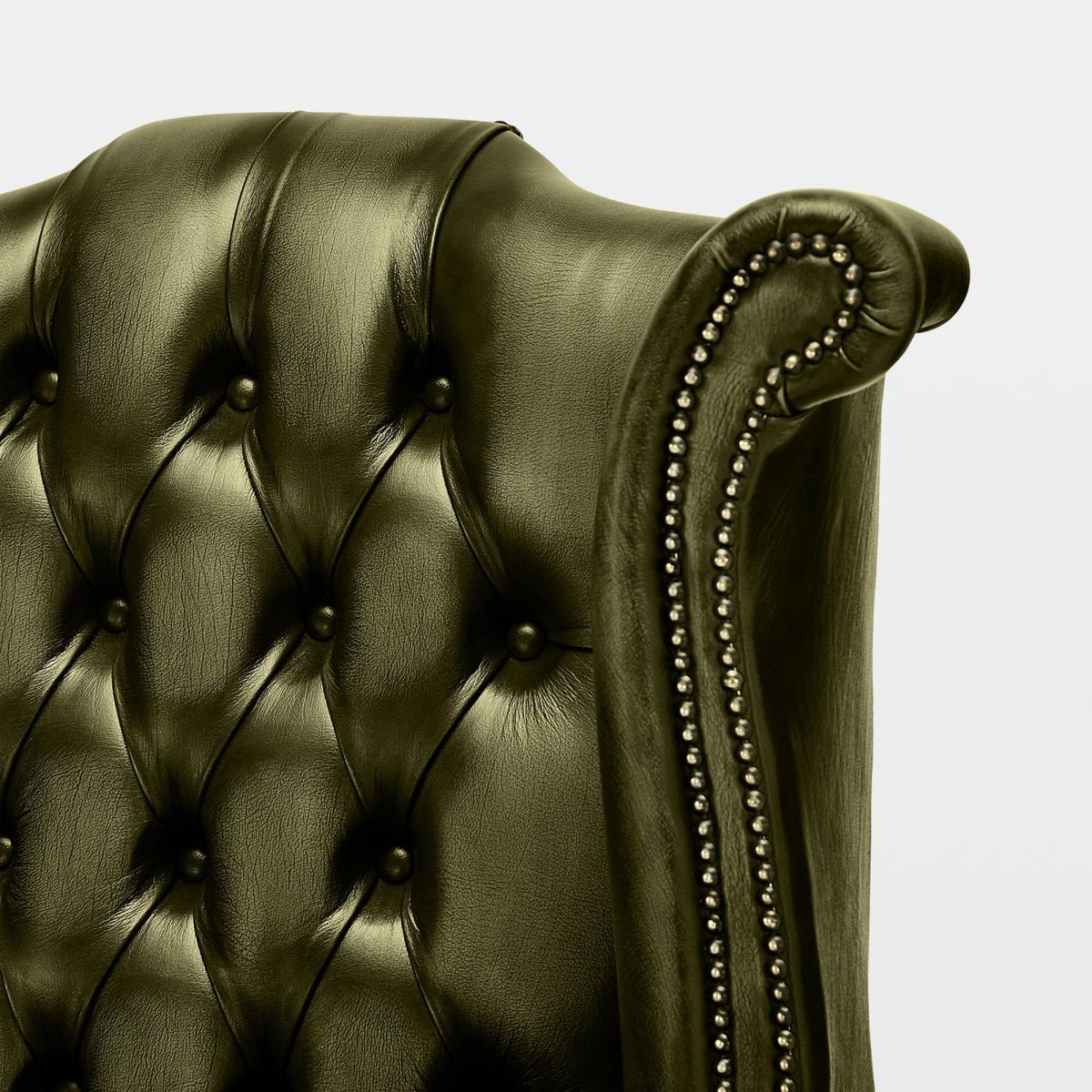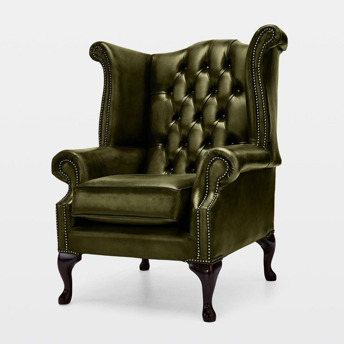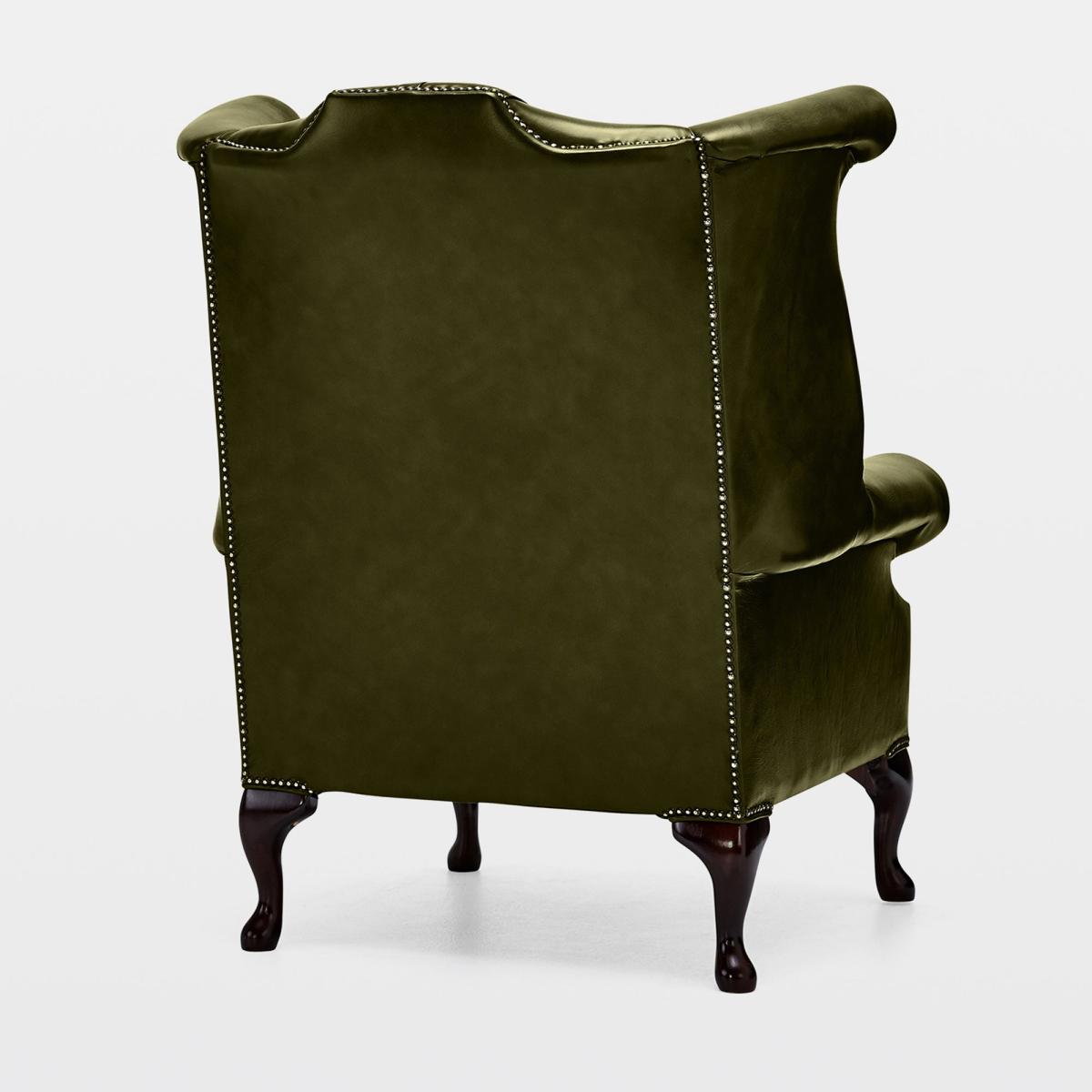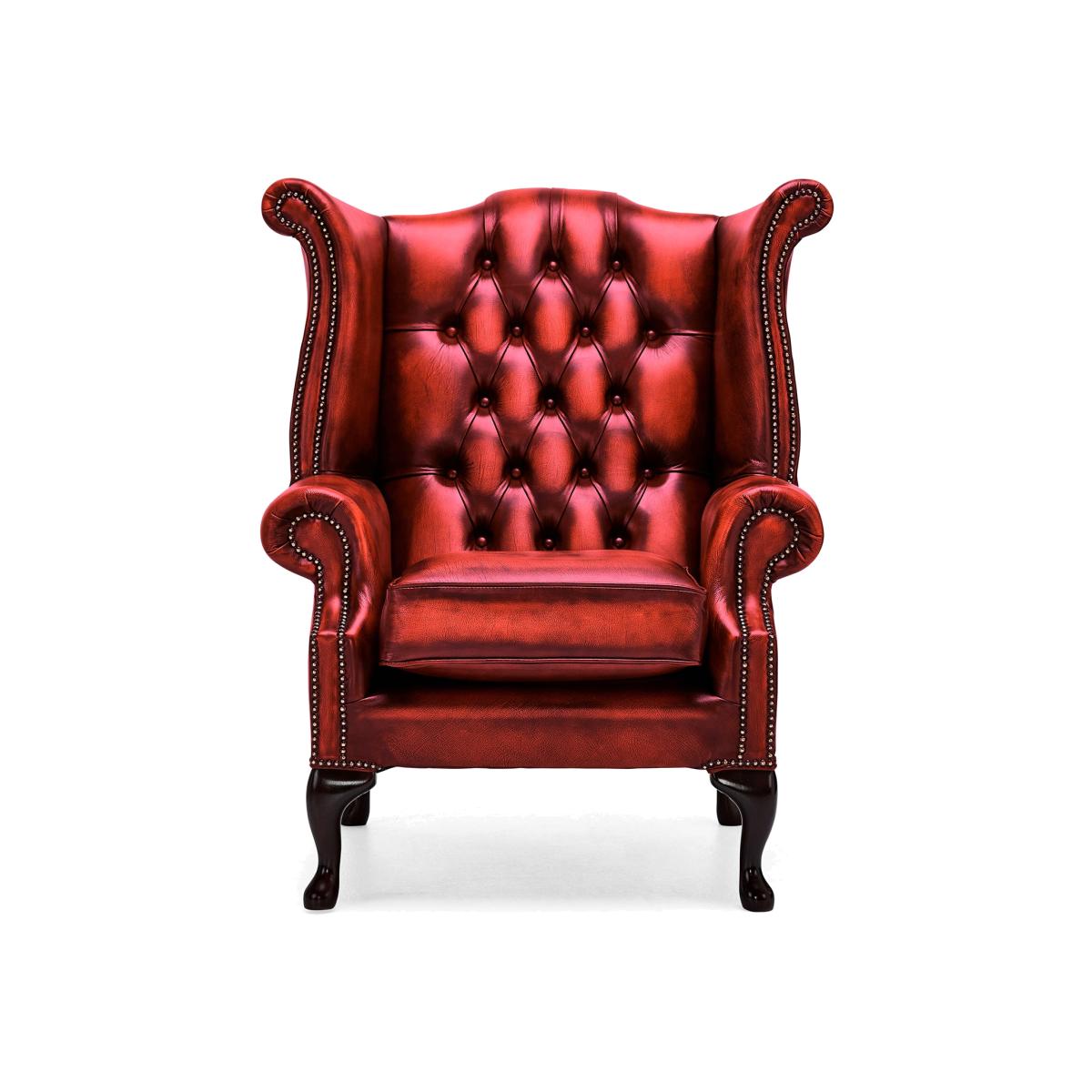 This armchair is a bold statement piece that works particularly well in traditional or Victorian-inspired interiors, adding a touch of regal elegance. I love its rich antique leather finish paired with the classic Queen Anne shape, which creates a timeless look. When styling, consider pairing it with neutral-toned furnishings to let the chair truly stand out, or add a contrasting modern throw for an eclectic twist. Practical tips include placing it in a reading nook or study, where its comfortable high back and plush upholstery can be appreciated fully. To keep it looking its best, regular conditioning of the leather is recommended, ensuring the rich red hue remains vibrant over time.