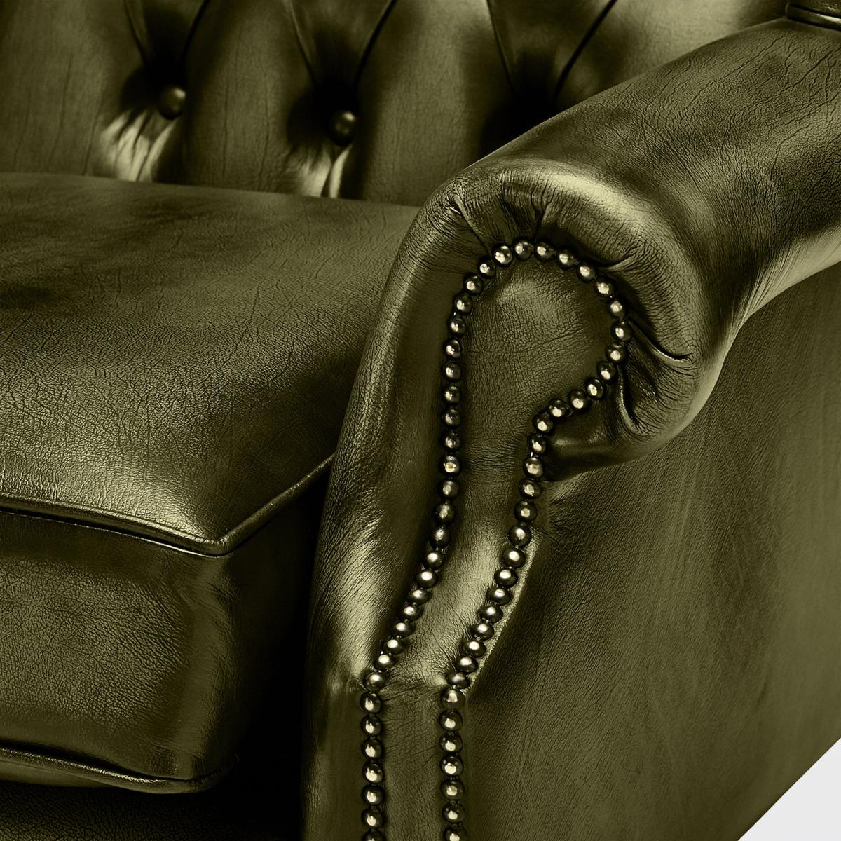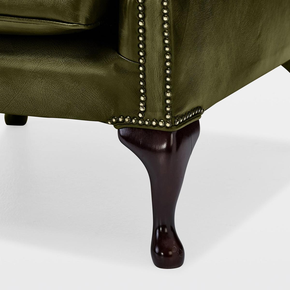 Belvedere Chesterfield Antique Leather Queen Anne Armchair Red