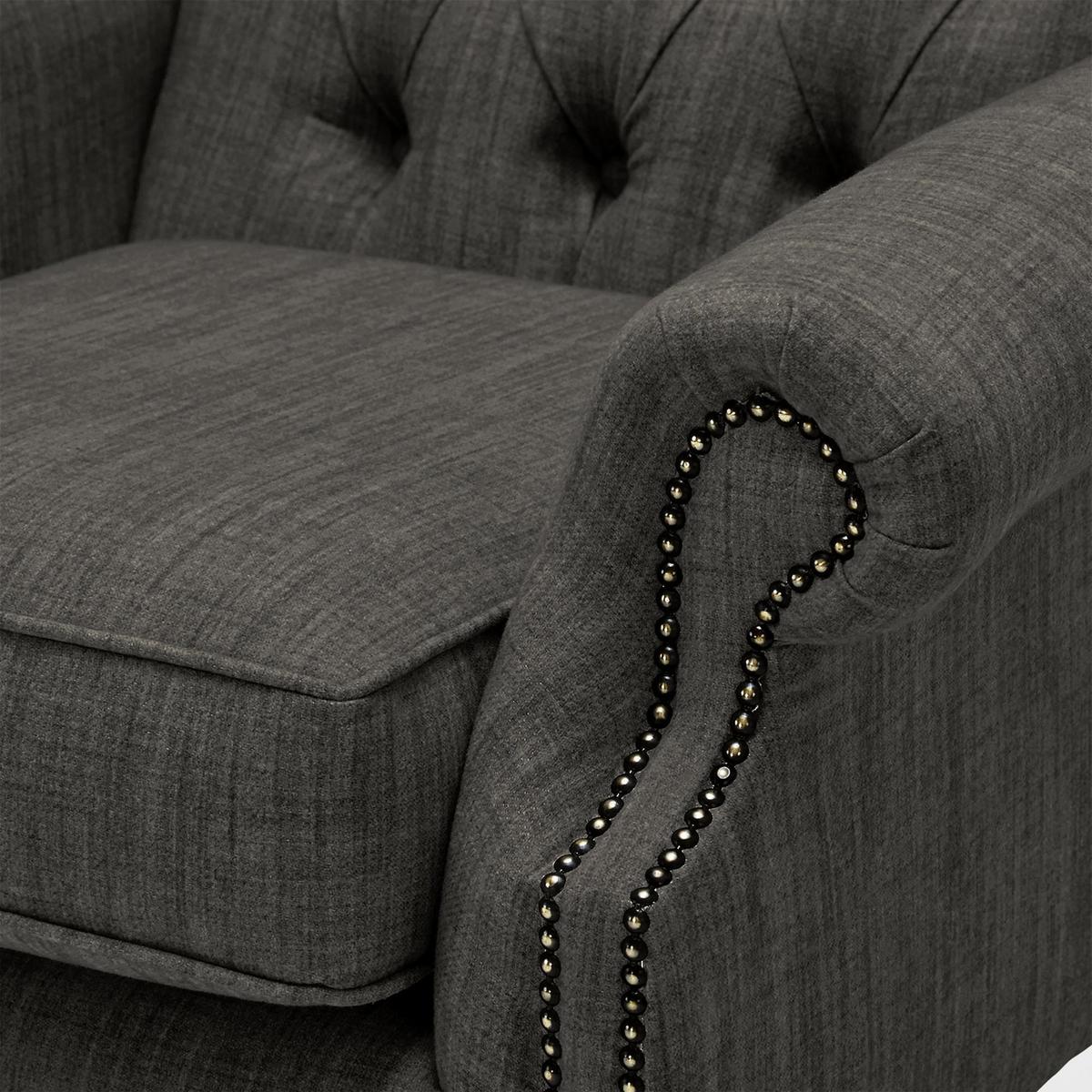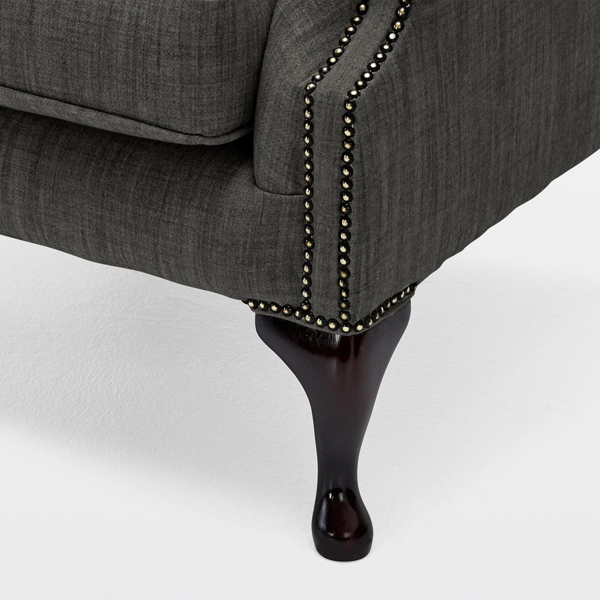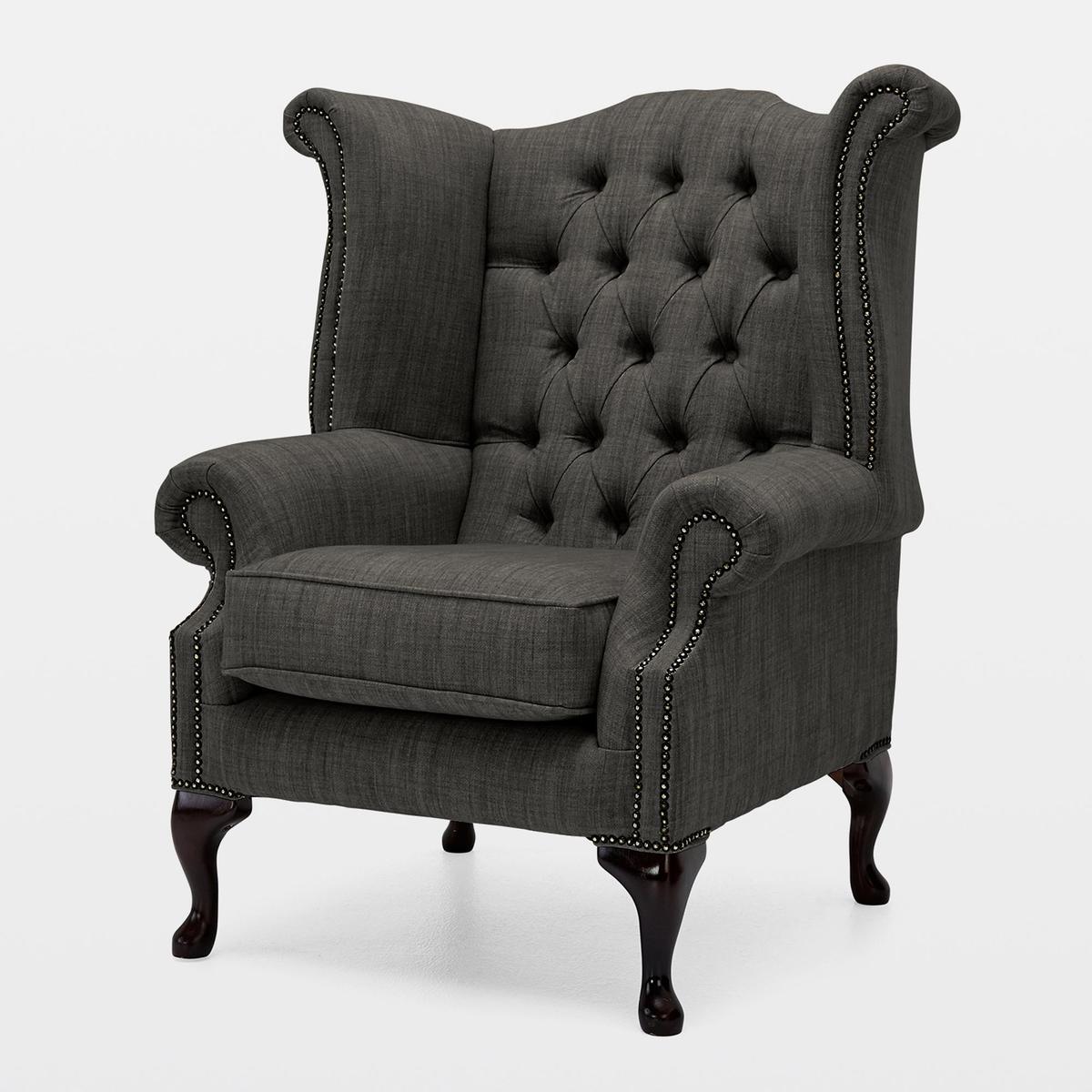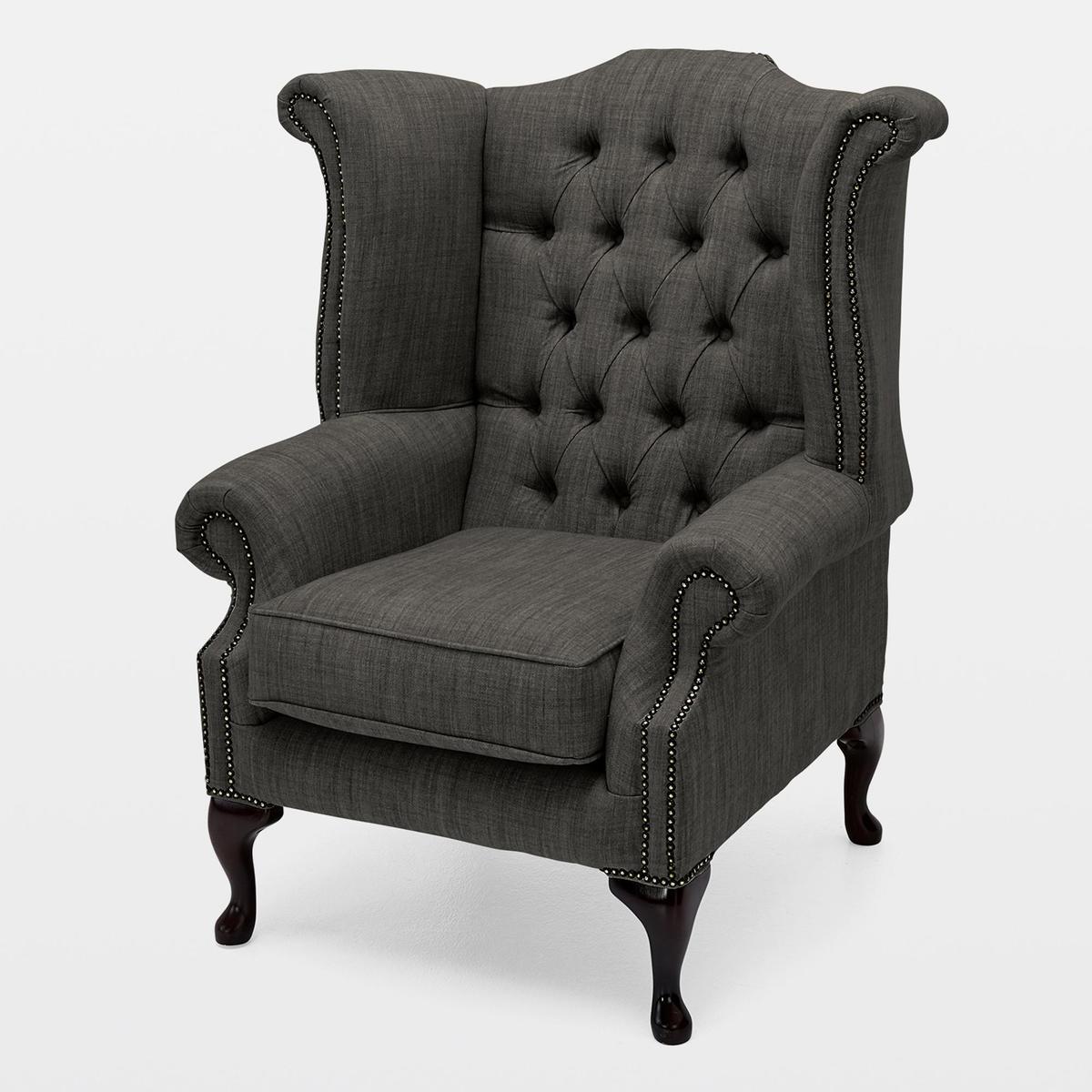 The Belvedere Chesterfield Wool Queen Anne Armchair is part of a unique range of made to order sofas that blend classic design which utilises the very best of British craftsmanship. \n\nThe Belvedere Range comes in a host of upholstery and colours options each featuring the famous button back, scroll arms and hand tacked studded detailing. With foam cushion filling and deep set sprung seats, each piece from this range proves to be comfortable and is supported by beautiful and sturdy mahogany feet. \n\nThe solid hardwood frame is glued, screwed and dowelled for support. The Queen Anne Chair is a versatile piece for any room seamlessly adding elegant style.\n\nPlease note, unfortunately we cannot deliver this item to the Channel Islands.\n\n[Click here](https://www.dunelm.com/infodocs/downloads/Furniture-Sizing-Guide.pdf) to check out our handy sizing guide to help you find out if you’ll be able to get your new furniture into your home.