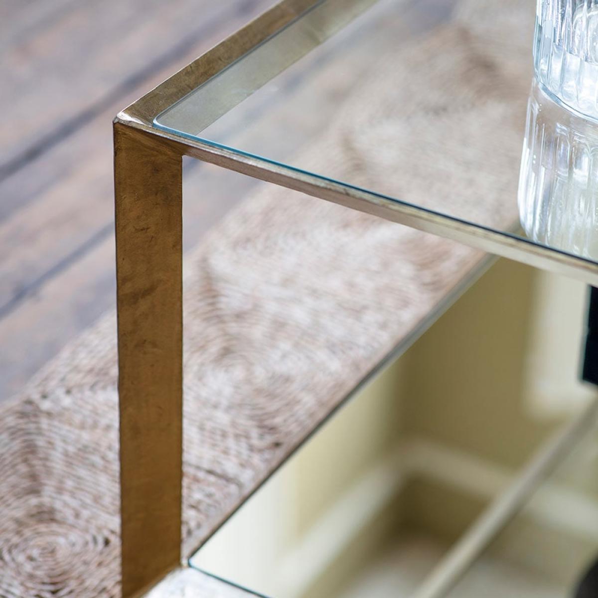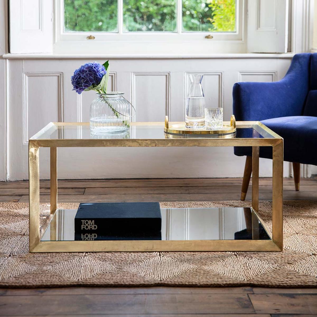 Create an eye-catching focal point in the living room or open-plan space with our stunning Belvedere Coffee Table, which combines practicality with punchy design. Its brass plated frame is tempered with a glass top and mirrored bottom, bringing hotel style luxury into any interior. A perfect size to sit easily within a generously sized room as well as a smaller area, team with our matching Belvedere Side Table and Console Table for a co-ordinated feel throughout.