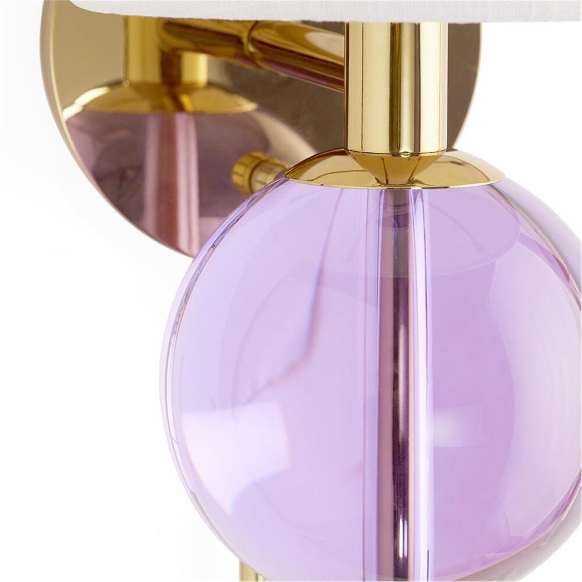 I really love this wall light for its blend of classic and contemporary elements. Its clean silhouette makes it versatile enough for various interiors, from modern minimal spaces to more eclectic settings. The standout feature is the purple glass orb, which adds a subtle pop of colour and visual interest without overwhelming a room. It works well in bedrooms, living rooms, or even hallways where you want ambient light with a touch of personality. Practical styling tips include positioning it at eye level in bedrooms or next to mirrors for functional lighting, and pairing it with sleek, understated furniture to let the lamp become a statement piece. This light is a great way to add both style and function to your space.